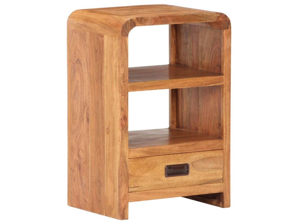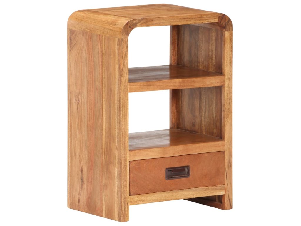 Tento noční stolek je zhotovený z masivního akáciového dřeva s medovou povrchovou úpravou, je tedy robustní a stabilní. Akáciové dřevo je tvrdé dřevo s krásnou strukturou, které vydrží mnoho let. Podobné akáciovému dřevu, známé jako růžové dřevo nebo palisandr, se vyznačuje svou bohatou strukturou. Každá fáze výrobního procesu se provádí s největší péčí, ať už se jedná o leštění, natírání nebo lakování. 2 police a 1 zásuvka poskytují dostatek prostoru pro úhledné uspořádání různých předmětů na dosah ruky.