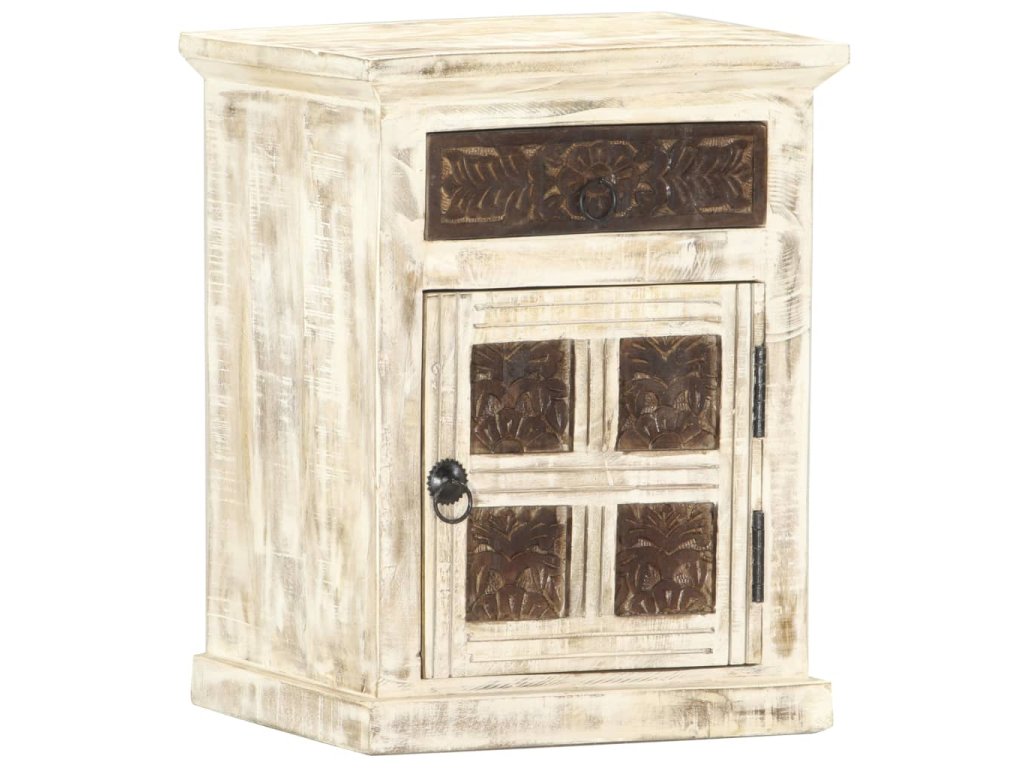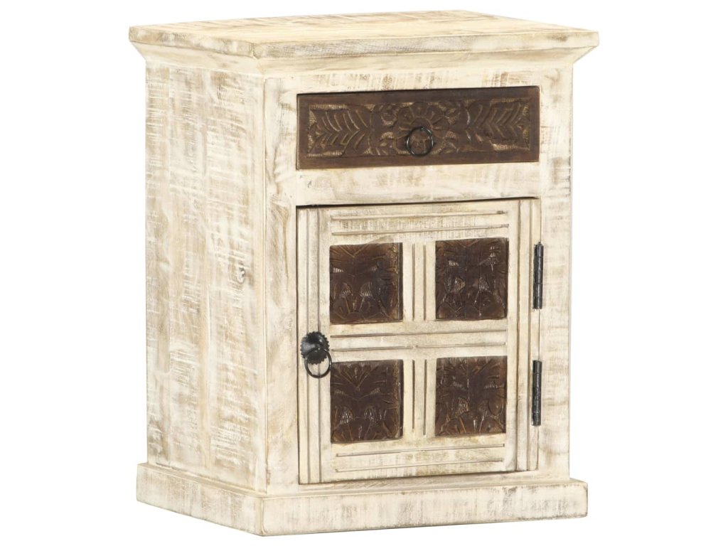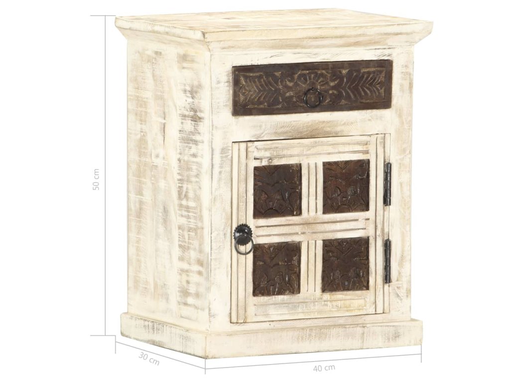 Noční stolek bílý 40 x 30 x 50 cm masivní mangovníkové dřevo 285896