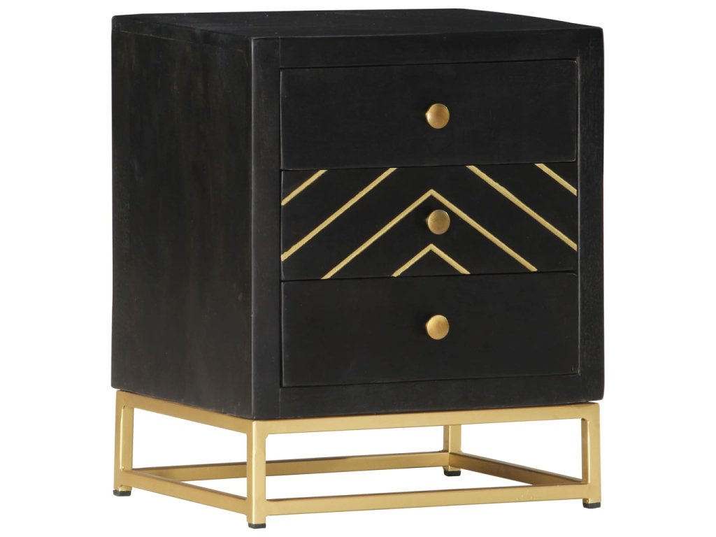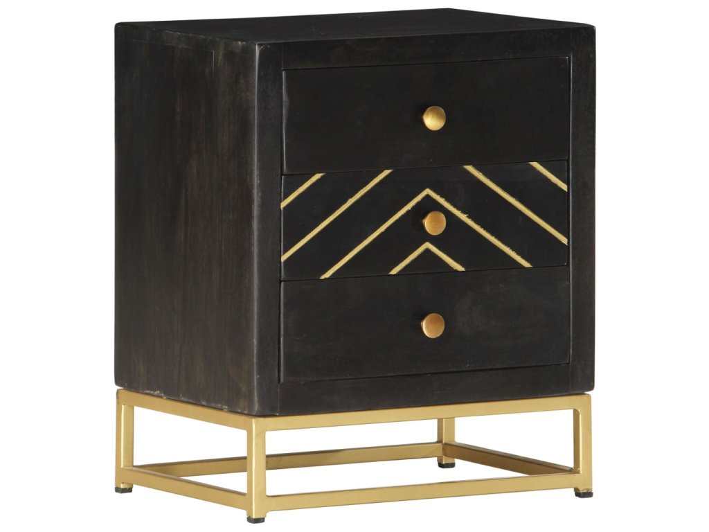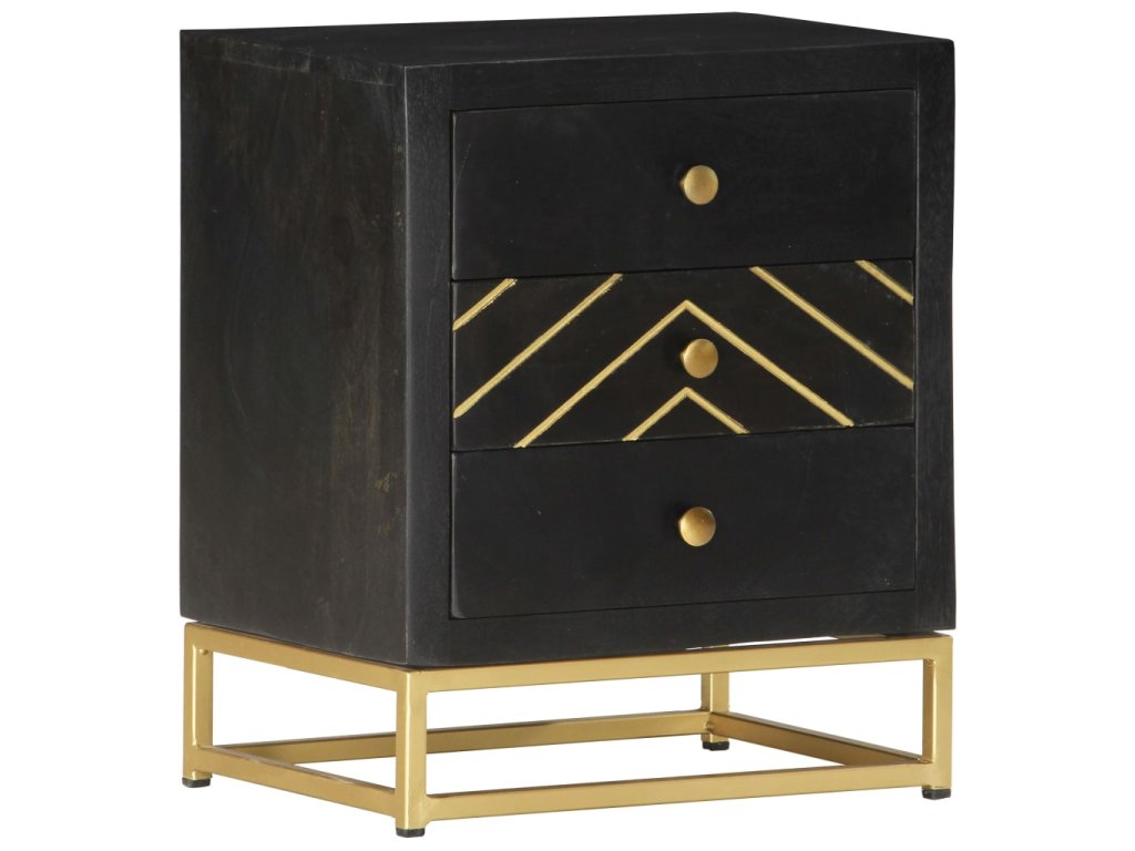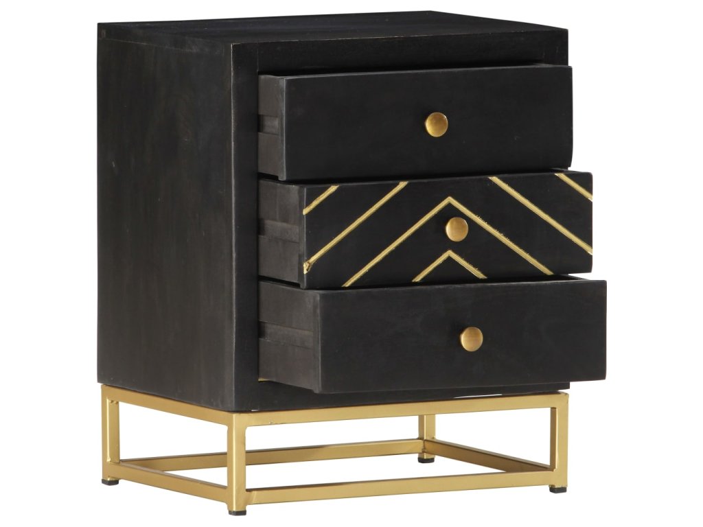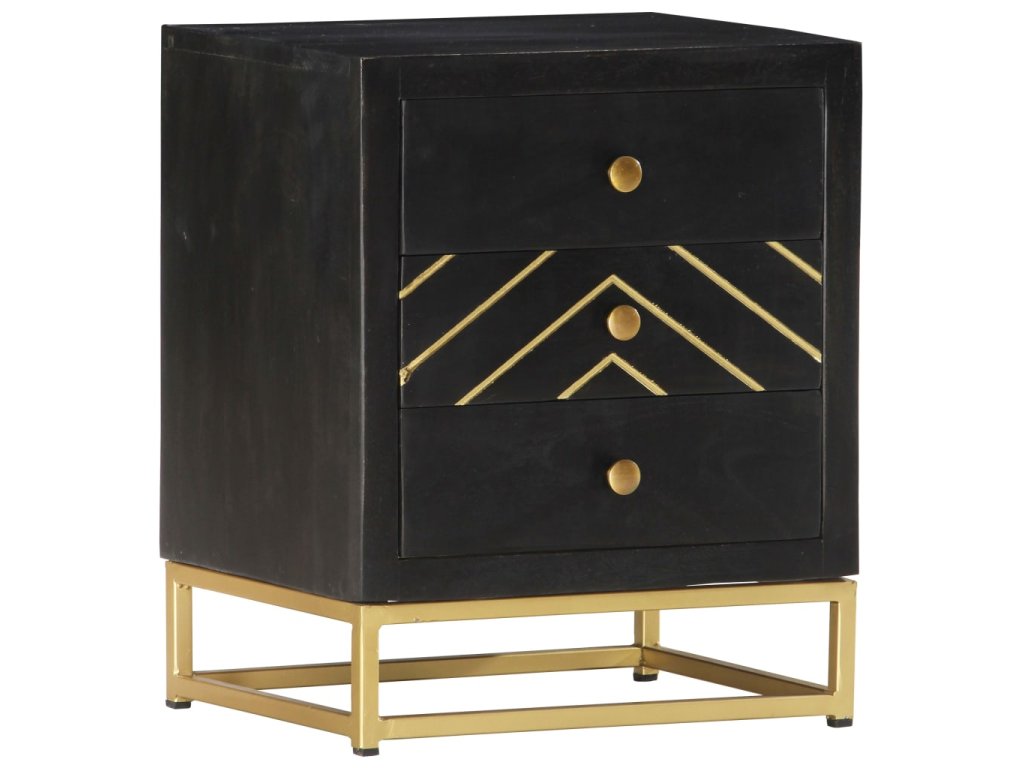 Noční stolek černozlatý 40x30x50 cm masivní mangovníkové dřevo 286517
