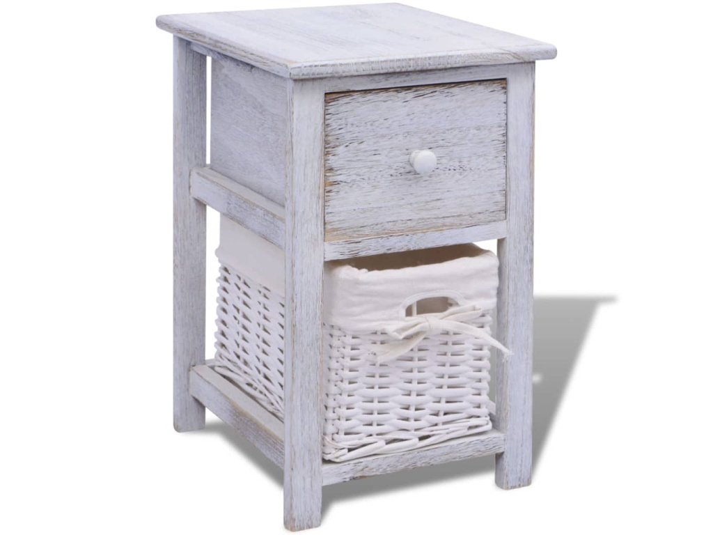 Noční stolek dřevěný bílý 242866