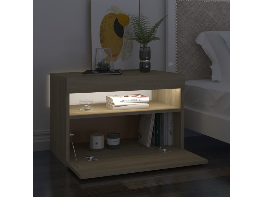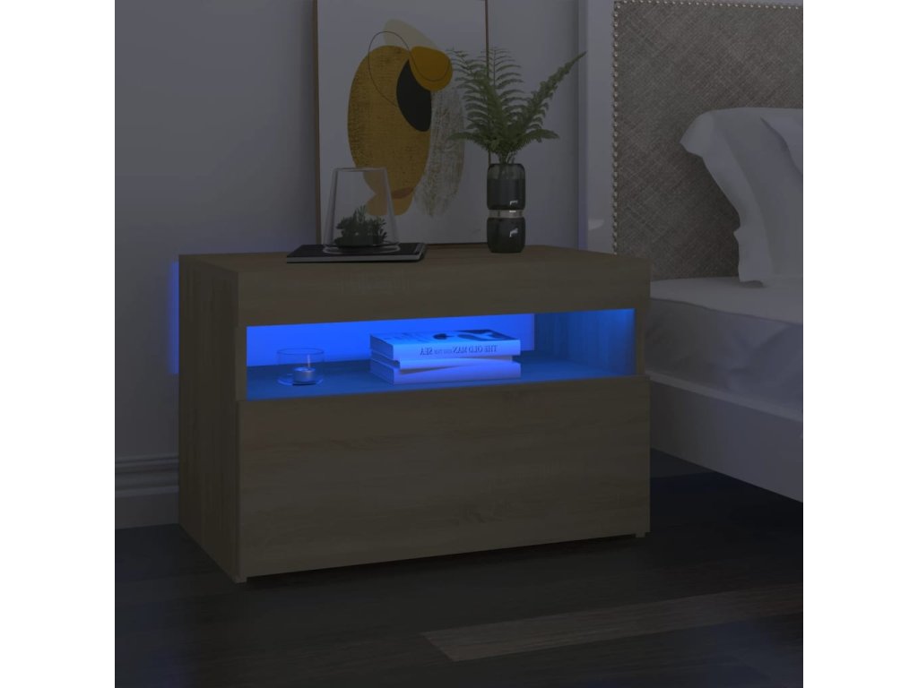 Noční stolek LED osvětlení dub sonoma 60x35x40 kompozitní dřevo 3082780