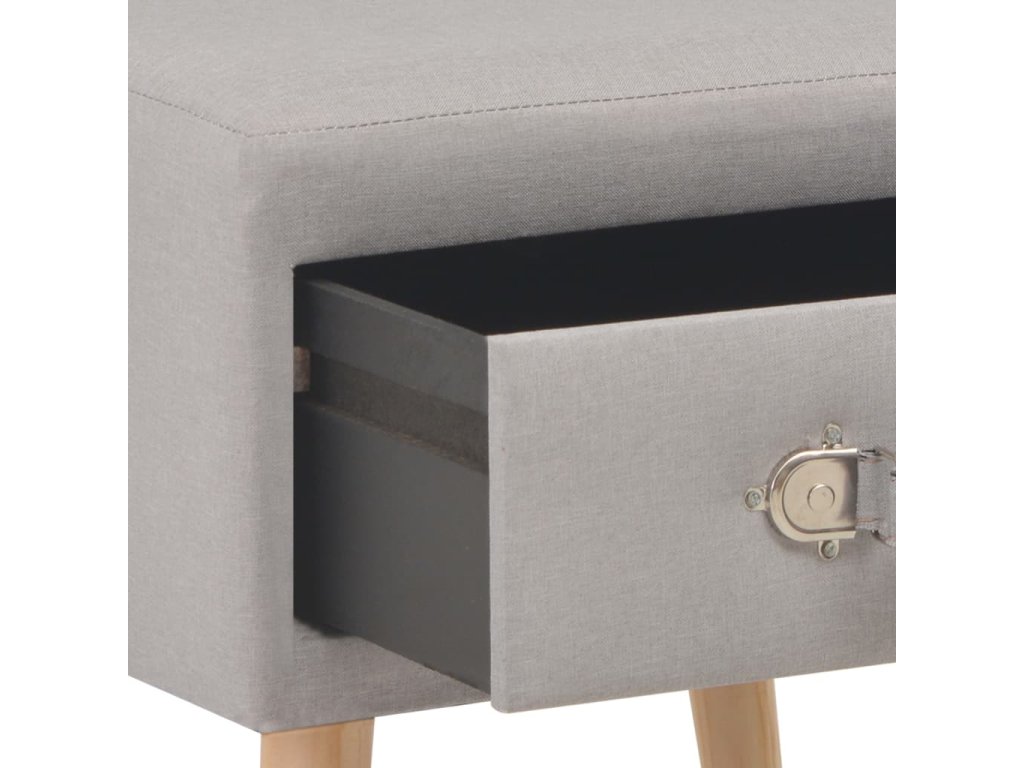Noční stolek byl mistrně zhotoven z látky a masivního borového dřeva, je tedy mimořádně odolný a trvanlivý. Disponuje zásuvkou, jež se hladce otevírá a zavírá a poskytne vám spoustu místa, kde si můžete přehledně uspořádat různé drobnosti, které chcete mít po ruce. Můžete ho navíc také použít jako skříňku do ložnice, klasickou skříňku se zásuvkou atd. Noční stolek se snadno sestavuje.