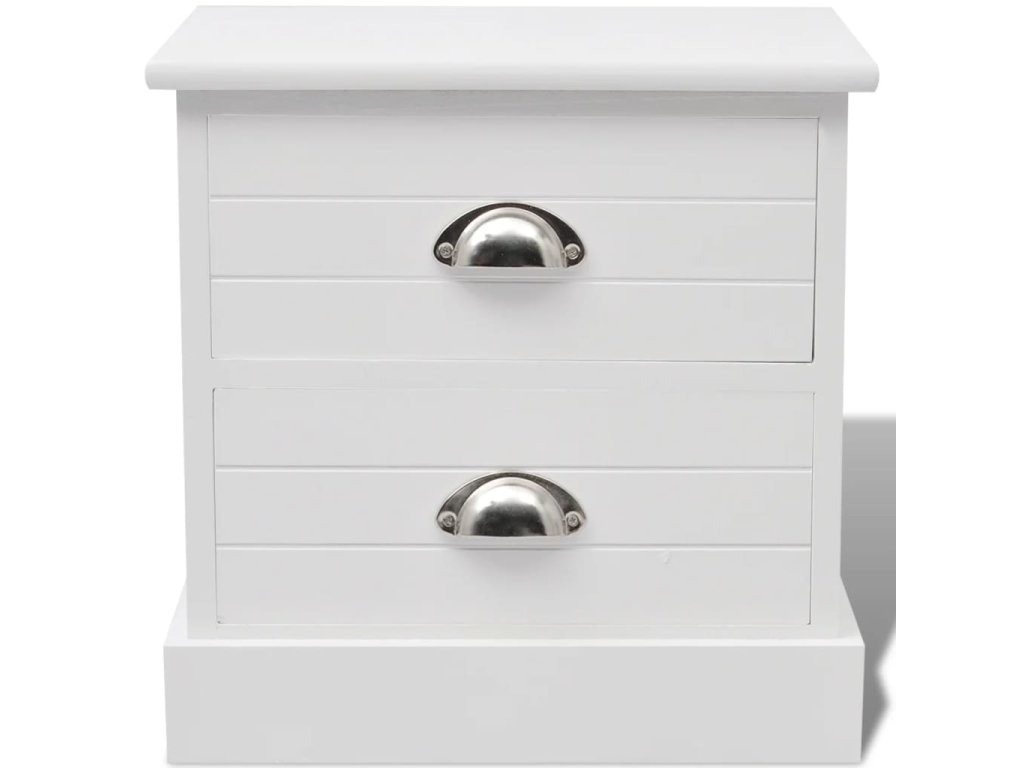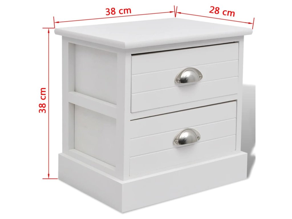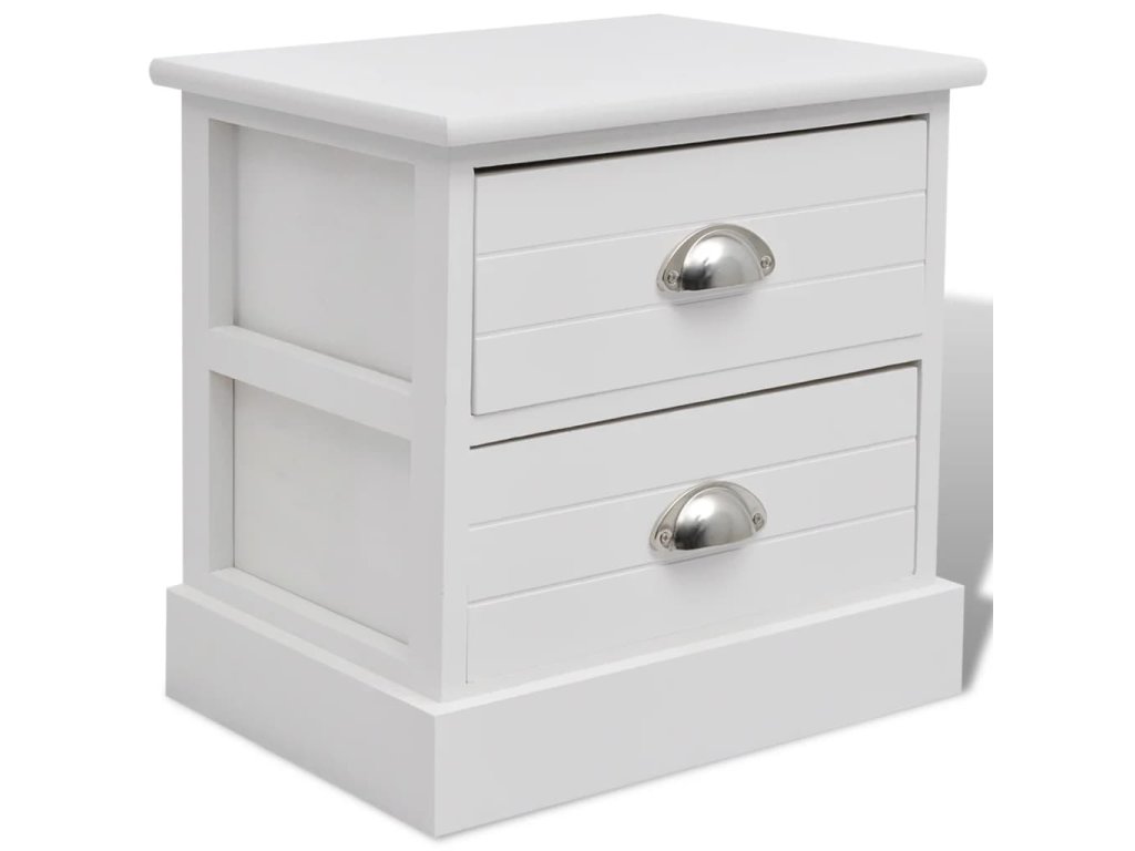 Tento kompaktní noční stolek má 2 hladce vysouvatelné šuplíky, které poskytují dostatek místa na vaše drobnosti, abyste je měli uspořádané a po ruce. Protože je vyrobený z vysoce kvalitních materiálů, je tento stolek odolný a snadno se čistí.