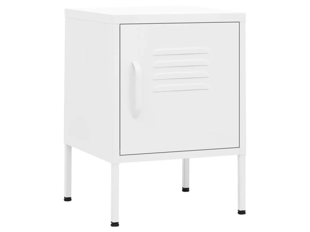 Noční stolek je vyrobený z oceli, takže je odolný a snadno se čistí. Obsahuje 1 nastavitelnou přihrádku a 1 zámek, poskytne vám tedy spoustu místa k bezpečnému uložení vašich knížek a dalších důležitých maličkostí tak, abyste je měli na dosah ruky. Nivelační nohy ve spodní části umožňují nastavit výšku podle vašich potřeb.