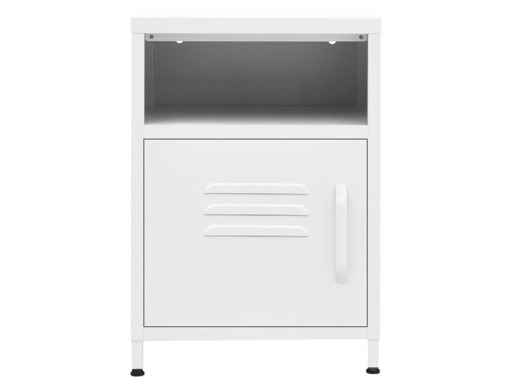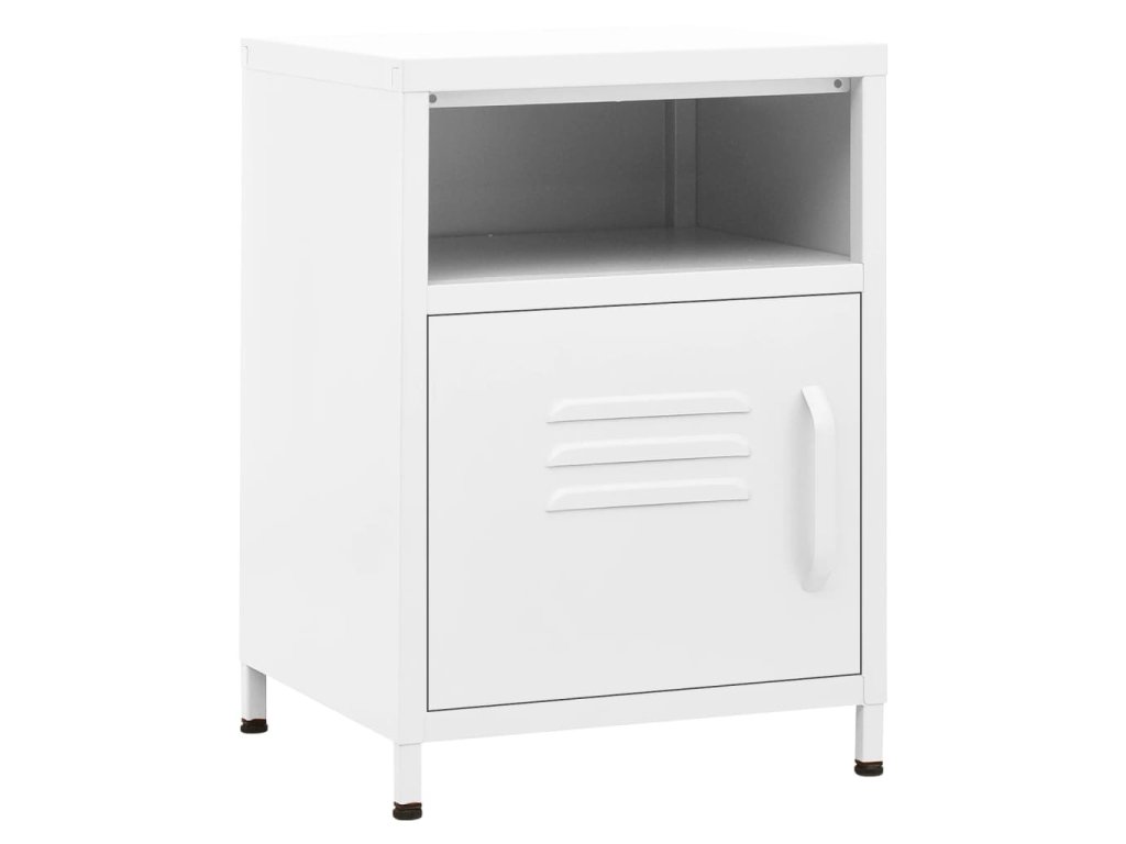 Noční stolek je vyrobený z oceli, takže je odolný a snadno se čistí. Najdete v něm 1 otevřenou přihrádku a 1 přihrádku s dvířky, které vám poskytnou spoustu místa k přehlednému uložení vašich DVD, multimediálních zařízení, knížek a dalších důležitých maličkostí tak, abyste je měli na dosah ruky. Nivelační nohy ve spodní části umožňují nastavit výšku podle vašich potřeb.
