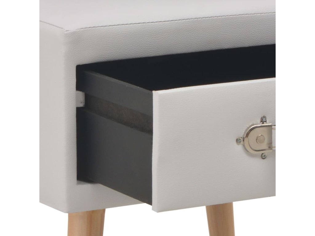 Noční stolek byl mistrně zhotoven z umělé kůže a masivního borového dřeva, je tedy mimořádně odolný a trvanlivý. Disponuje zásuvkou, jež se hladce otevírá a zavírá a poskytne vám spoustu místa, kde si můžete přehledně uspořádat různé drobnosti, které chcete mít po ruce. Můžete ho navíc také použít jako skříňku do ložnice, klasickou skříňku se zásuvkou atd. Noční stolek se snadno sestavuje.