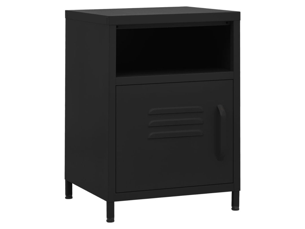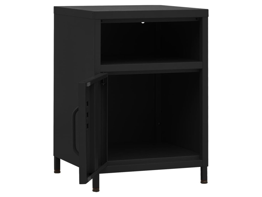 Noční stolek je vyrobený z oceli, takže je odolný a snadno se čistí. Najdete v něm 1 otevřenou přihrádku a 1 přihrádku s dvířky, které vám poskytnou spoustu místa k přehlednému uložení vašich DVD, multimediálních zařízení, knížek a dalších důležitých maličkostí tak, abyste je měli na dosah ruky. Nivelační nohy ve spodní části umožňují nastavit výšku podle vašich potřeb.