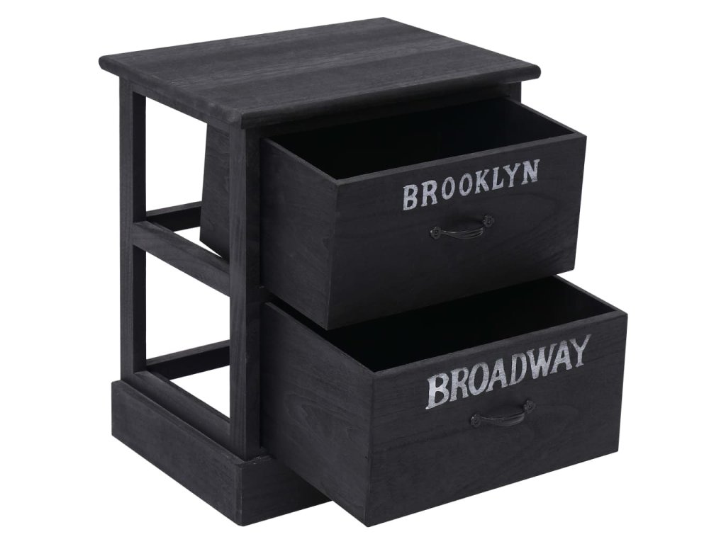 2 zásuvky těchto kompaktních skříněk se hladce vysouvají i zasouvají a najdete v nich spoustu prostoru pro uspořádání menších předmětů, které chcete mít na dosah ruky. Skříňky jsou zhotovené z pevného dřeva pavlovnie, jsou proto výjimečně odolné vůči opotřebení a snadno se čistí.