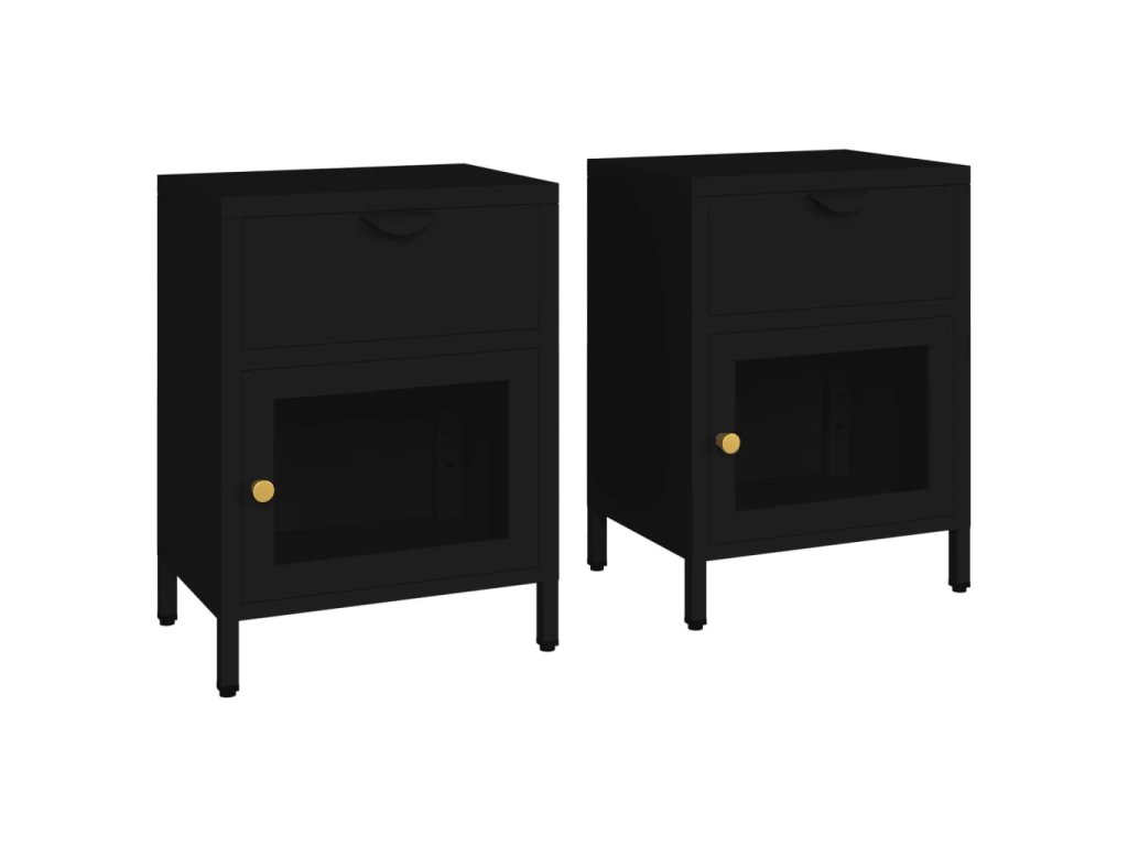 Noční stolky 2 ks černé 40 x 30 x 54,5 cm ocel a sklo 3095202