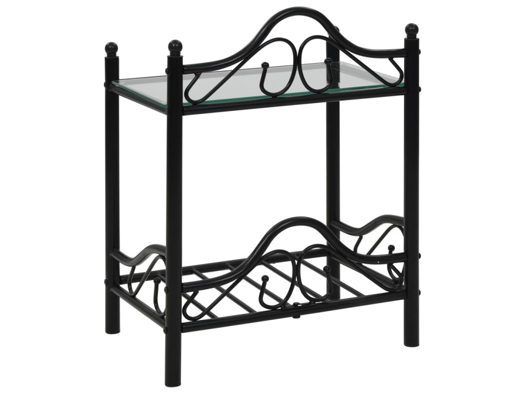 Sada nočních stolků sestává z robustních ocelových rámů a panelů z tvrzeného skla. Je tudíž stabilní a odolná. Každý stolek disponuje 2 policemi, jež se výborně hodí k odkládání nejrůznějších menších předmětů. Zaoblené ocelové konstrukce dodávají stolkům elegantní styl. Montáž sady je snadná. Balení obsahuje 2 noční stolky.