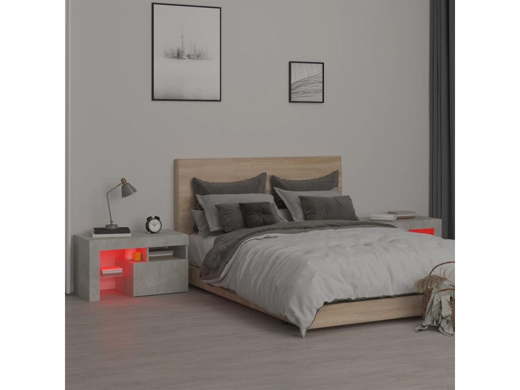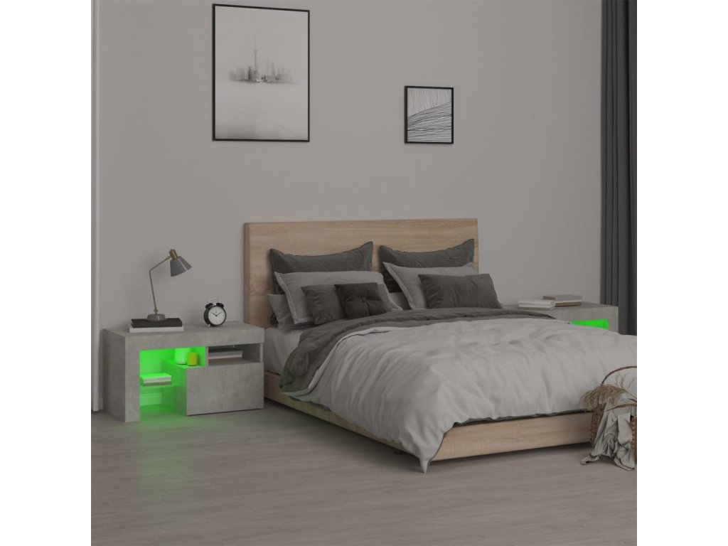 Noční stolky 2 ks s LED osvětlením betonově šedé 70x36,5x40 cm 3152773