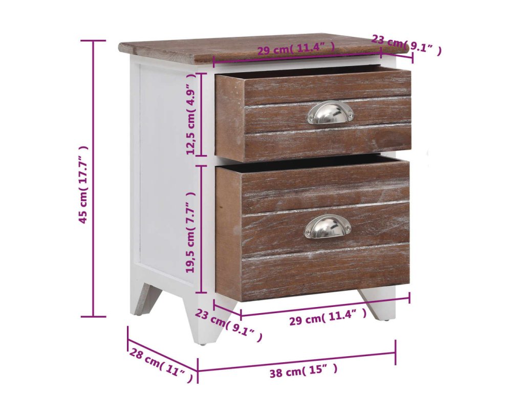 Noční stolky 2 ks se 2 zásuvkami hnědé a bílé 242042