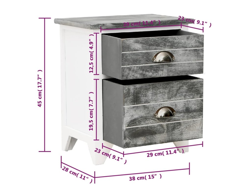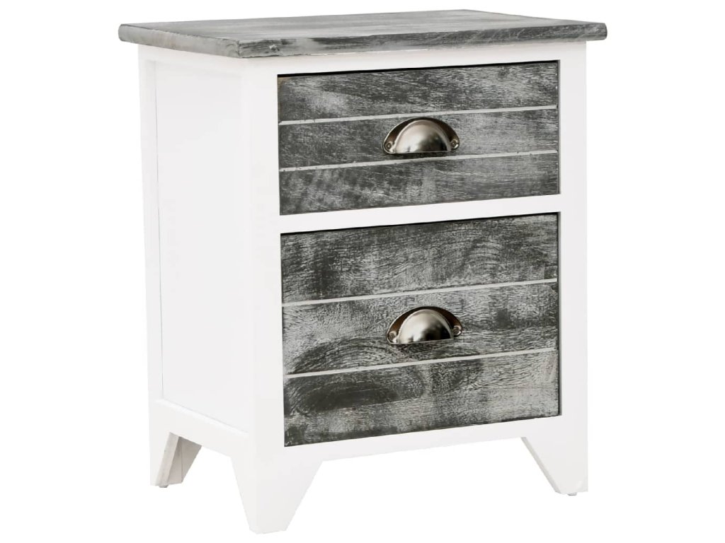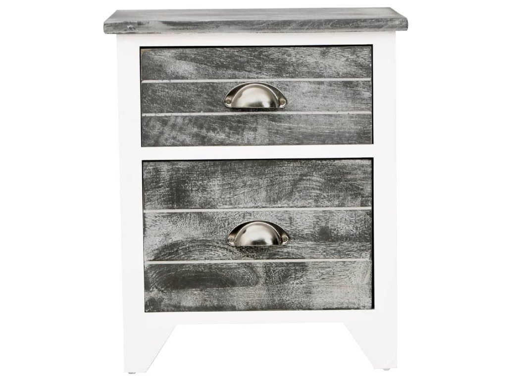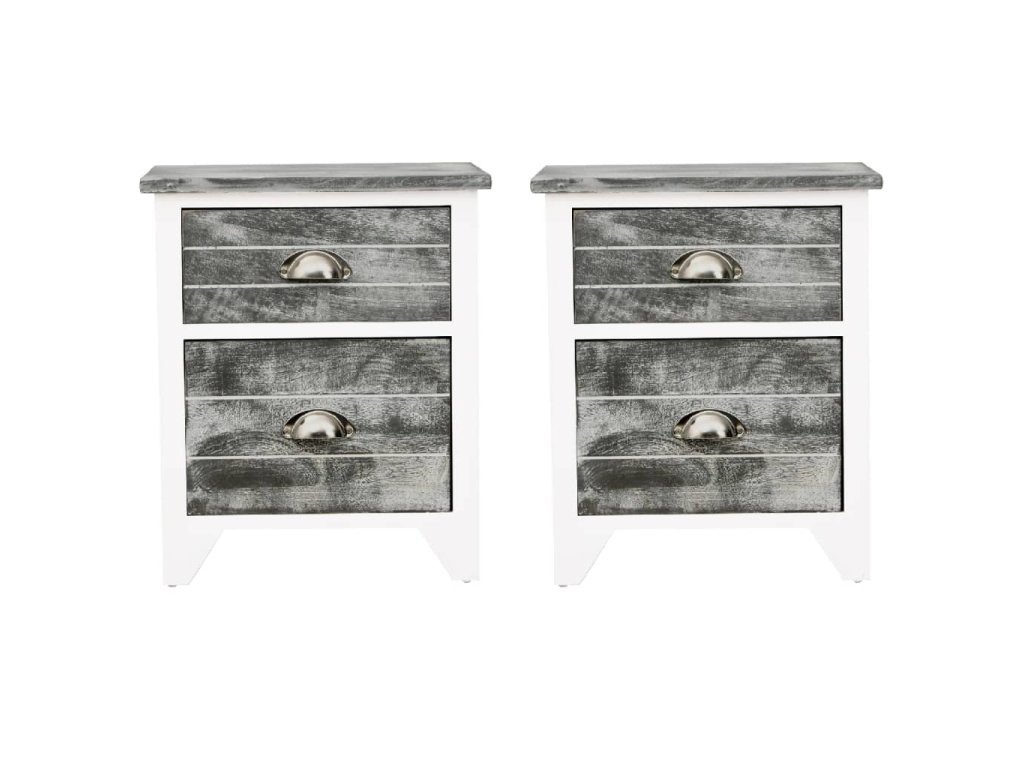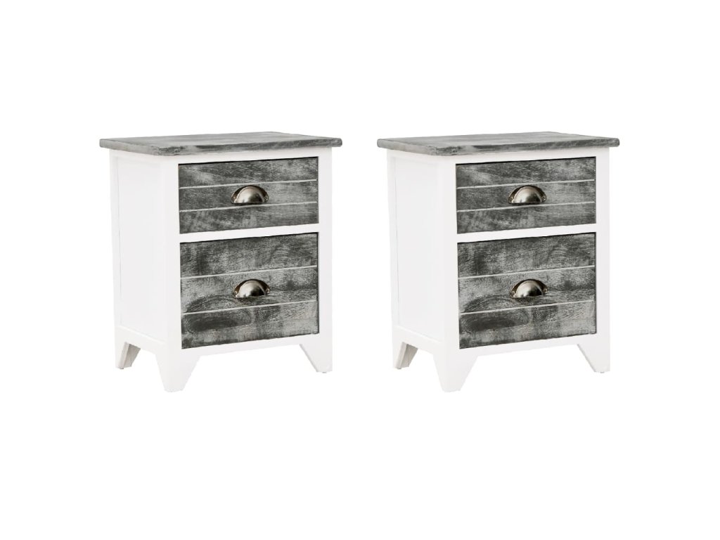 Noční stolky 2 ks se 2 zásuvkami šedé a bílé 242041
