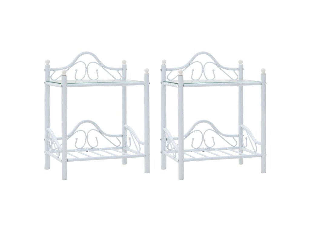 Noční stolky 2 ks z oceli a tvrzeného skla 45x30,5x60 cm bílé 246729