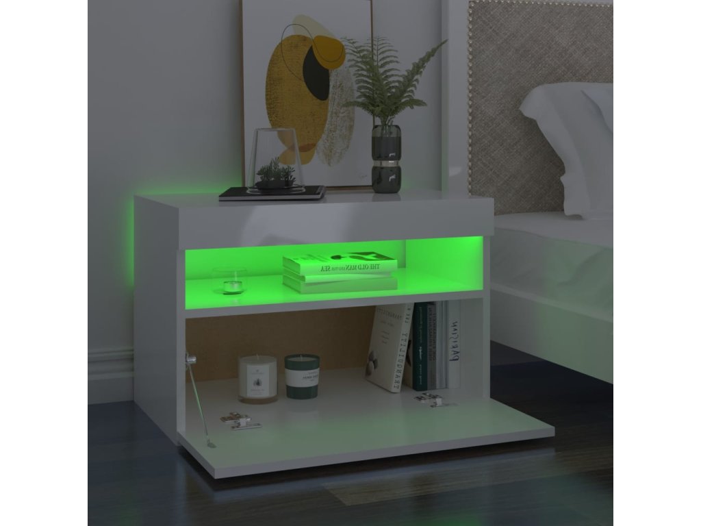 Noční stolky s LED osvětlením 2 ks bílé vysoký lesk 60x35x40 cm 3082787