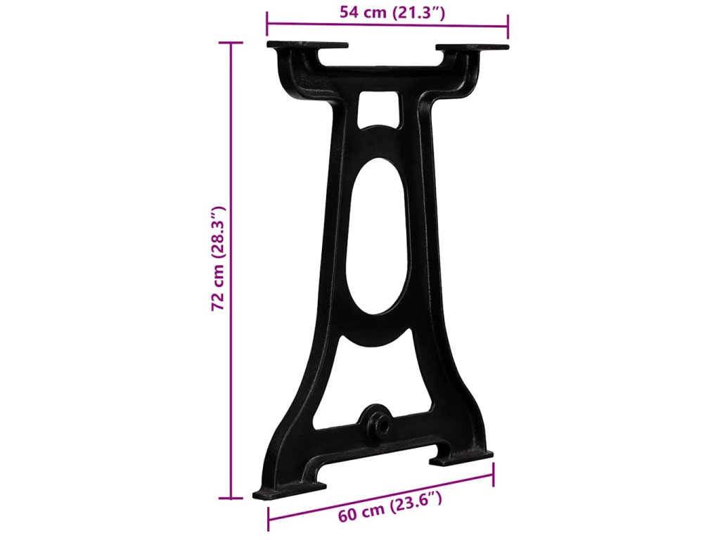 Nohy jsou vyrobeny z masivní litiny, která je vyleštěná, natřená a nalakovaná. Díky tomu jsou pevné a hodně toho vydrží. Protože jsou navrženy ve tvaru písmene Y, unesou i těžkou desku. Každá z nich je zakončena montážní podložkou, do které jsou navrtané díry. Montáž desky je proto rychlá a jednoduchá.