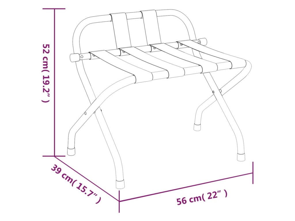 Tento stojan na zavazadla s opěradlem je vyroben z robustního rámu a má 4 silné nylonové popruhy. Je ideální pro hotely, hostely a ubytovny.