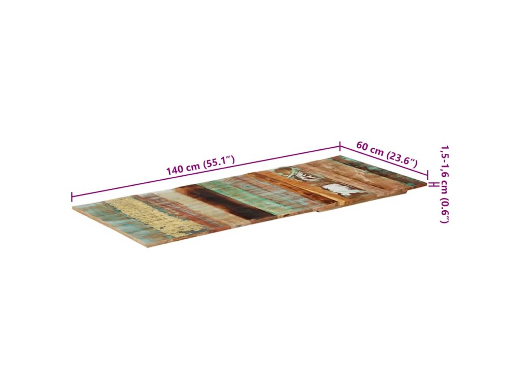 Obdélníková stolní deska 60×140 cm 15–16 mm recyklované dřevo 286047