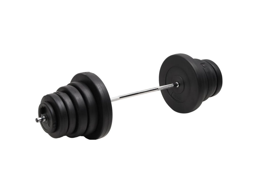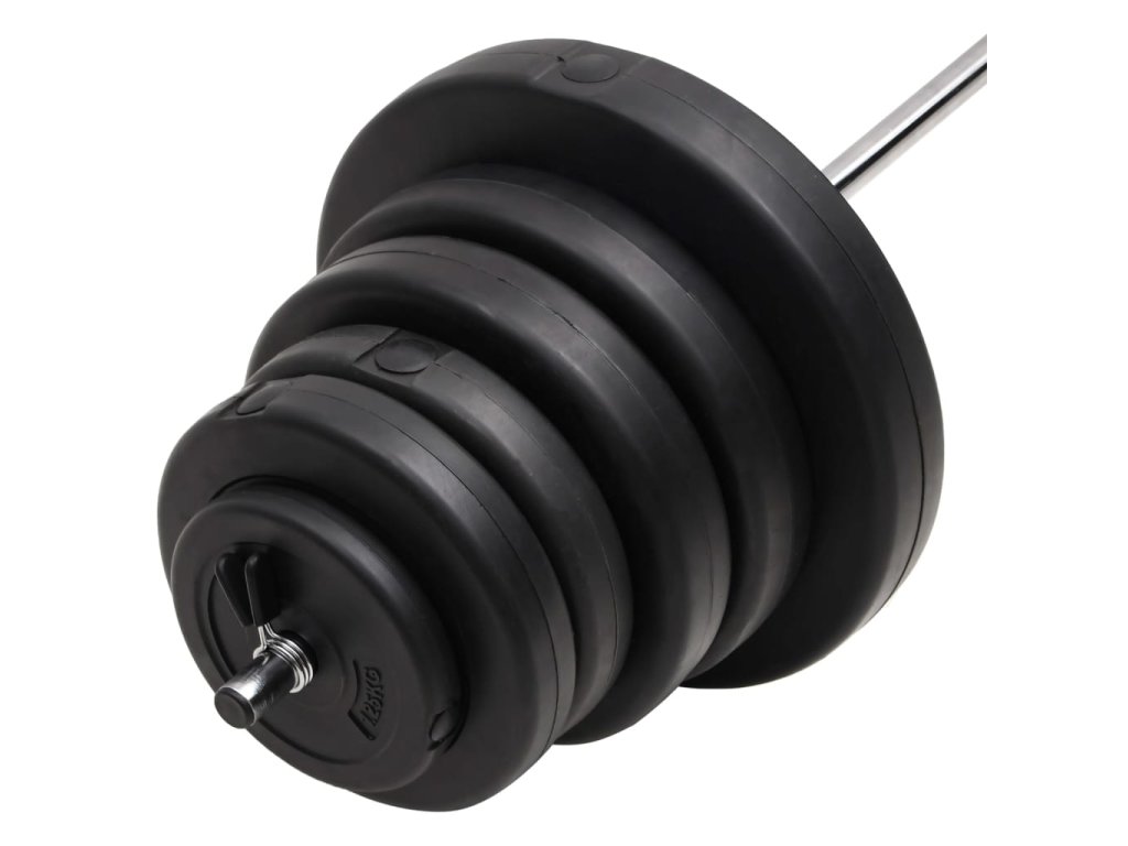 - Odolný materiál: Činka je vyrobena z pochromované oceli a je pevná a stabilní. Závaží je vyrobené z cementu a potažené robustním plastem šetrným k podlaze. Díky tomu nezaznamenáte žádné nepříjemné řinčení závaží.