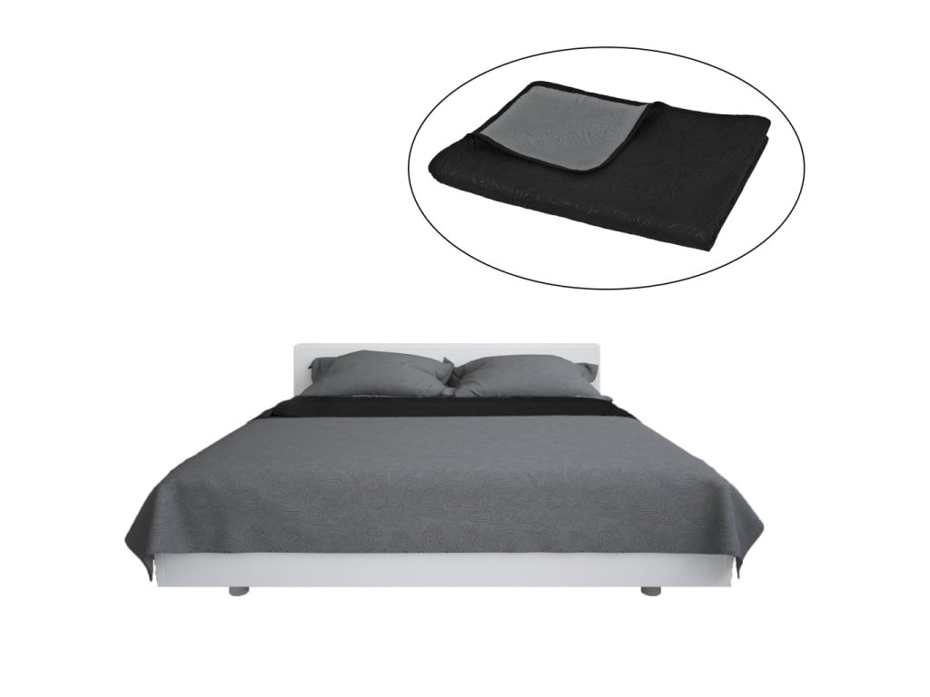 Oboustranný prošívaný přehoz na postel 230 x 260 cm šedo-černý 132967