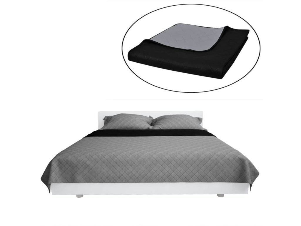 Oboustranný prošívaný přehoz na postel černo-šedý 170 x 210 cm 130883