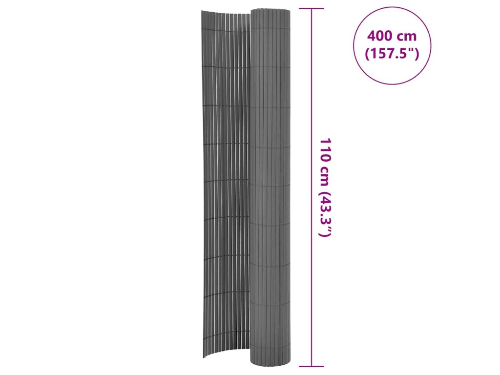 Oboustranný zahradní plot 110 x 400 cm šedý 317160