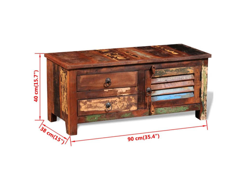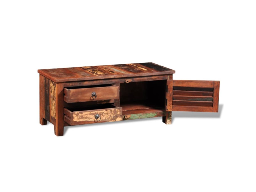 Tato TV / hi-fi skříňka je vyrobená z recyklovaného dřeva, což znamená, že každý kus nábytku je jedinečný a lehce se odlišuje od ostatních. Nábytek vyrobený z již použitého neboli recyklovaného dřeva má vlastnosti různých druhů dřeva, jako je teak, akácie, mango, damarovník atd. Recyklované dřevo je masivní, solidní, odolné a krásné. Otvory po hřebících nebo odhalená struktura dřeva s sebou nesou jeho historii a vyzývají další generace, aby k ní přidali tu svoji. Tento kus nábytku ve vašem domě ukáže, že vám záleží na zachování zdrojů, ochraně životního prostředí a udržitelném rozvoji.