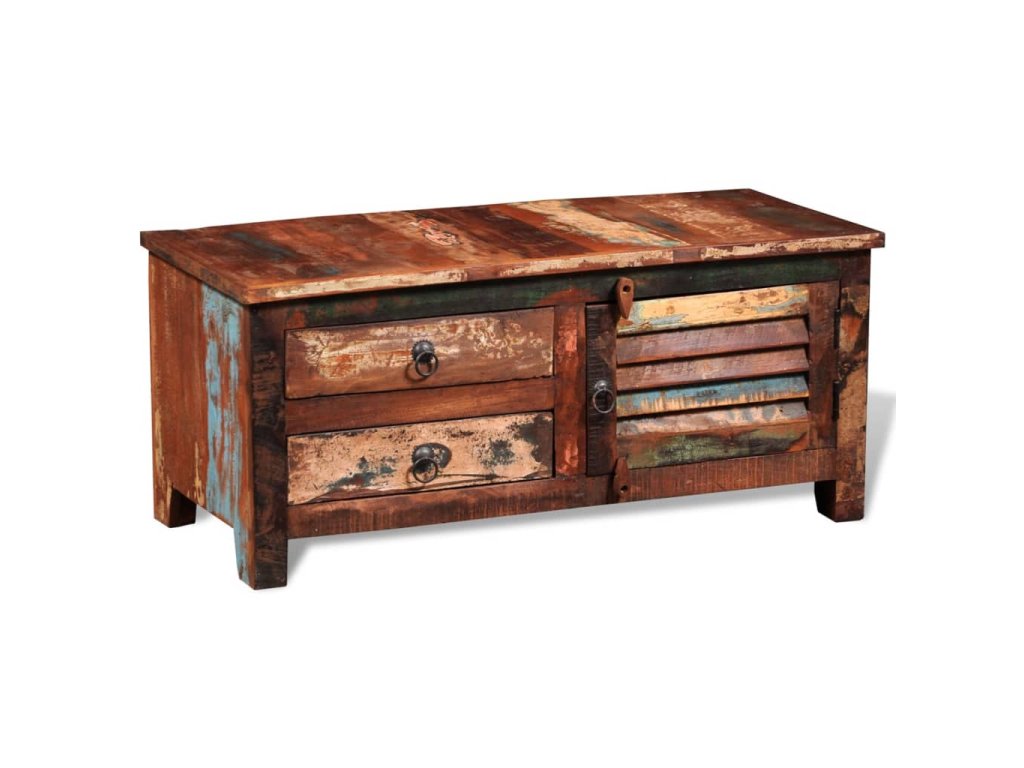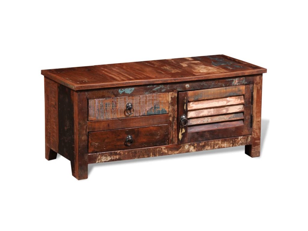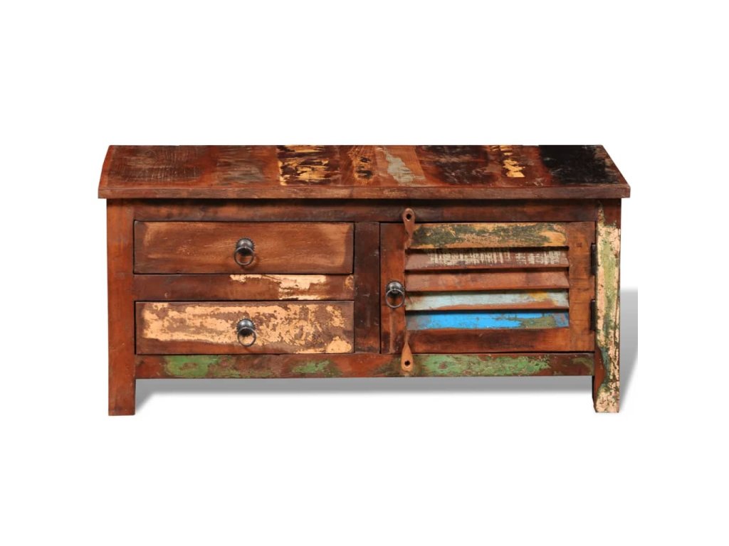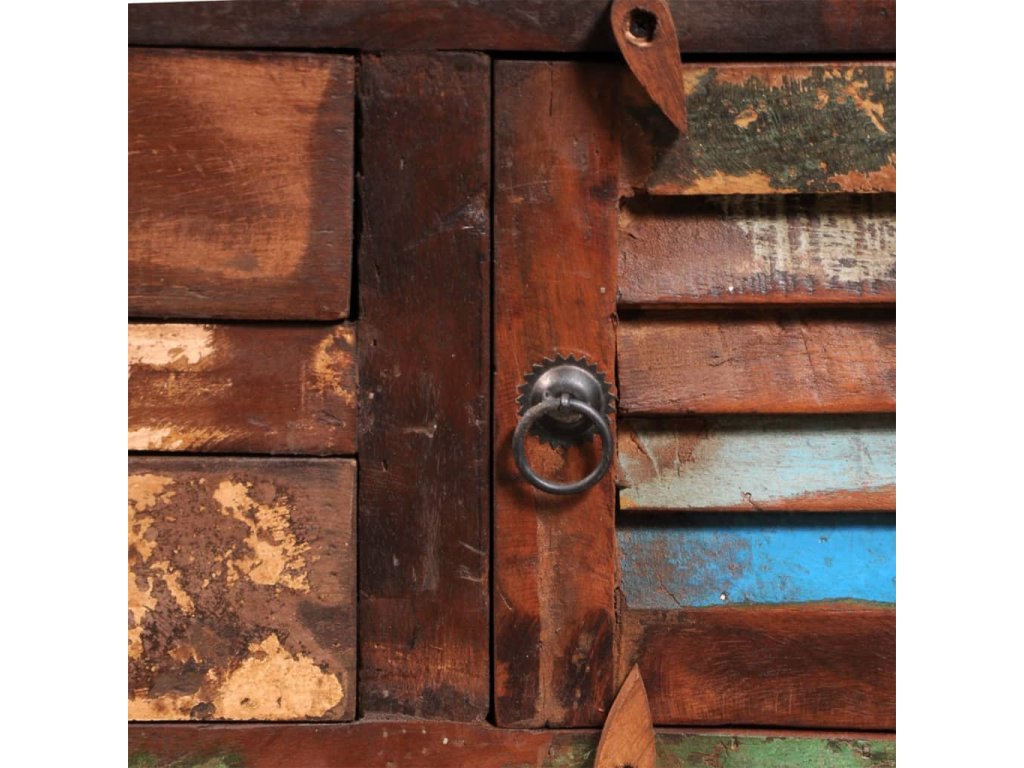 Tato vintage odkládací skříňka z masivního recyklovaného dřeva s 1 přihrádkou s dvířky a 2 zásuvkami vám udržovat vaše věci v dokonalém pořádku. Na bytelnou horní desku si můžete umístit lampu nebo dekorativní předměty.