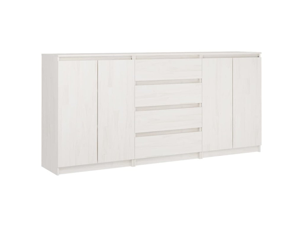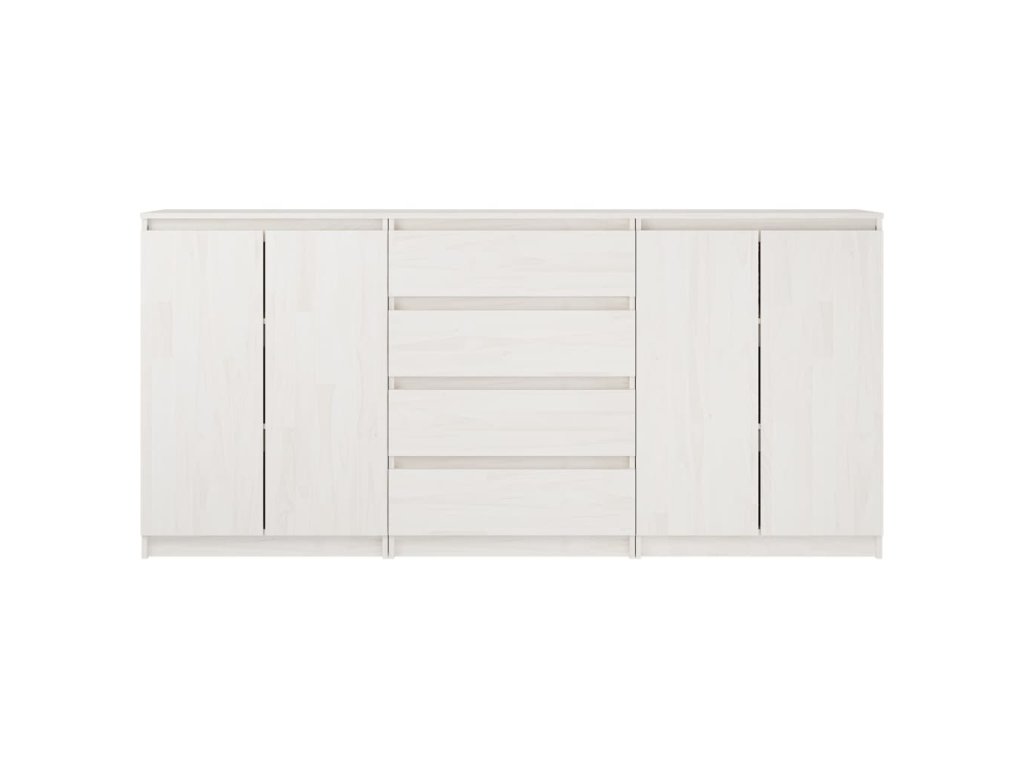 Tyto skříňky jsou vyrobeny z masivního borového dřeva, které zajišťuje jejich pevnost a odolnost. Tuto sadu tvoří 2 skříňky se 2 dvířky a 3 přihrádkami a 1 skříňka se 4 zásuvkami. Poskytují dostatek úložného prostoru pro přehledné uspořádaní všech vašich věcí na dosah ruky. Pevná horní deska je také ideální pro vystavení dekorativních předmětů, fotorámečků nebo pokojových rostlin. Skříňky se navíc snadno čistí vlhkým hadříkem.