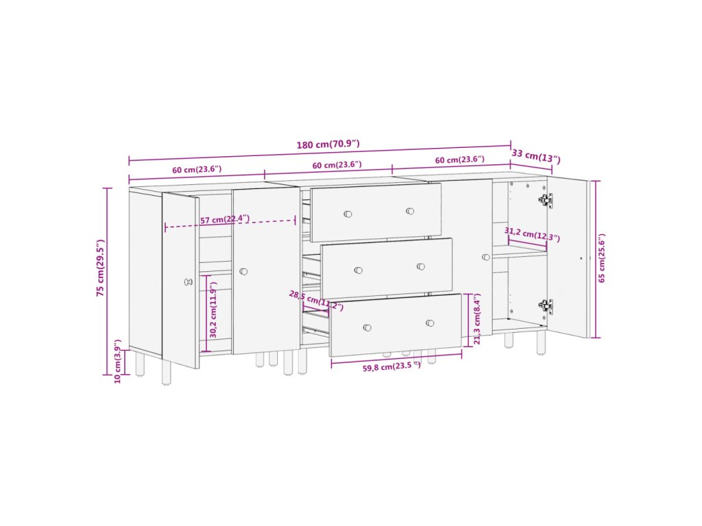 - Stabilní nohy: Železné nohy dodávají příborníku robustnost a stabilitu.