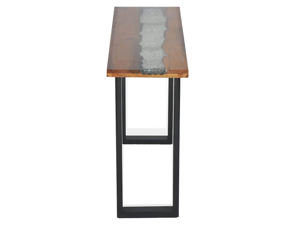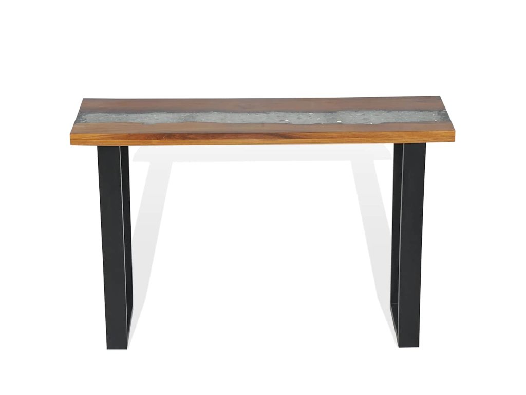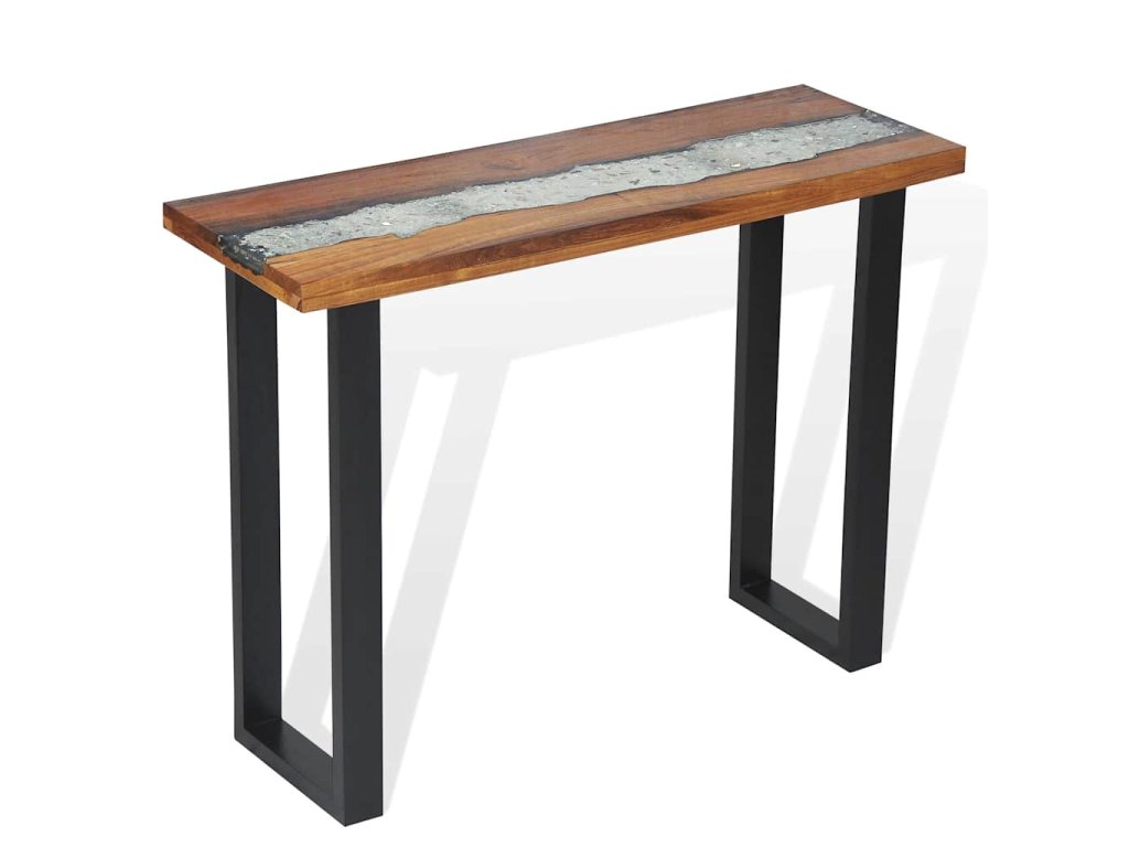 Deska stolu je vyrobena z pravého teaku. Jde o pevný, stabilní povrch, na který si můžete odložit nápoje, vázy, mísy s ovocem či dekorace. Navíc se pyšní dekorativní výplní ze skla a pryskyřice, která stolku dodává jeho nevšední vzhled. Pevné mahagonové nohy mu naopak propůjčují odolnost a stabilitu. Jeho montáž je velmi snadná.