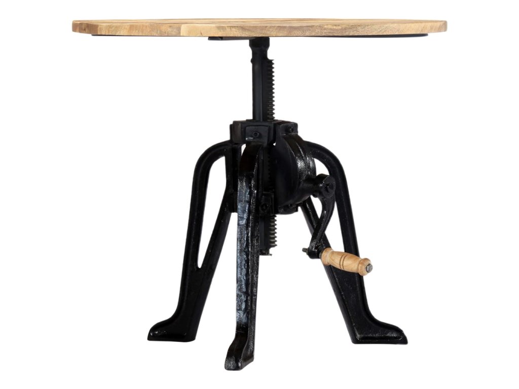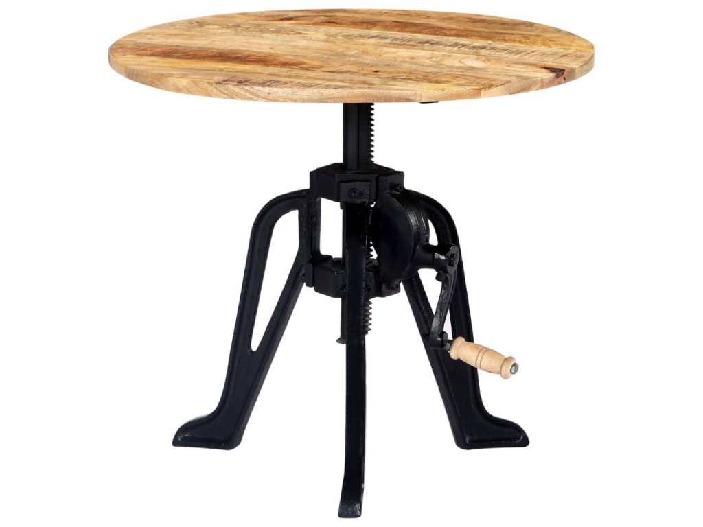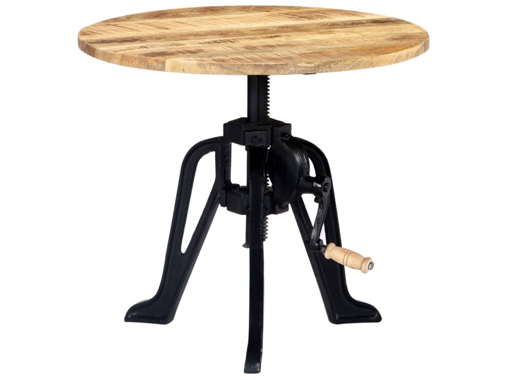 Odkládací stolek je vyroben z masivního mangovníkového dřeva, což zajišťuje jeho vysokou stabilitu a odolnost. Mangovník má husté a robustní tvrdé dřevo, jehož povrch se vyznačuje překrásnou hnědou či zlatou kresbou. Každý krok výrobního procesu je prováděn s mimořádnou péčí, ať už se jedná o leštění, natírání anebo lakování. Litinová základna dodává stolku na pevnosti a prodlužuje jeho životnost. Výšku dřevěného stolku lze nastavit v rozmezí 46 až 63 cm, takže ho můžete využívat k různým účelům.
