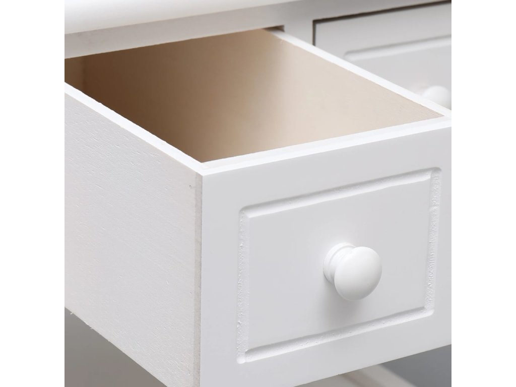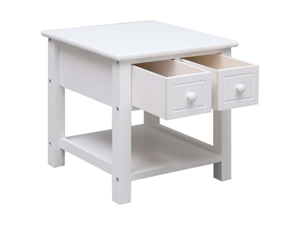 Tento konferenční stolek je zhotoven ze dřeva pavlovnie a MDF, je tedy velice odolný a stabilní. Stolek k pohovce nabízí úložný prostor se 2 zásuvkami a spodní poličkou. Robustní stolová deska skvěle poslouží k vystavení dekorativních předmětů, zarámovaných fotografií nebo pokojových květin. Očistíte ho snadno navlhčeným hadříkem. Sestavení odkládacího stolku je snadné.