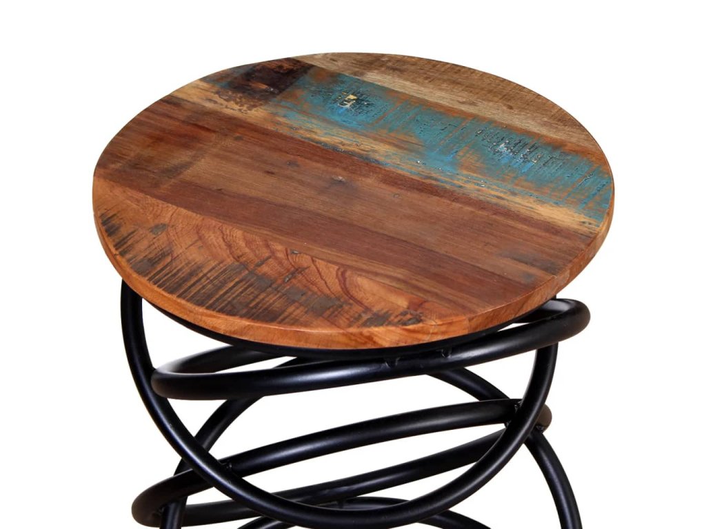 - Materiál: Deska z masivního recyklovaného dřeva + železné nohy s práškovým lakem