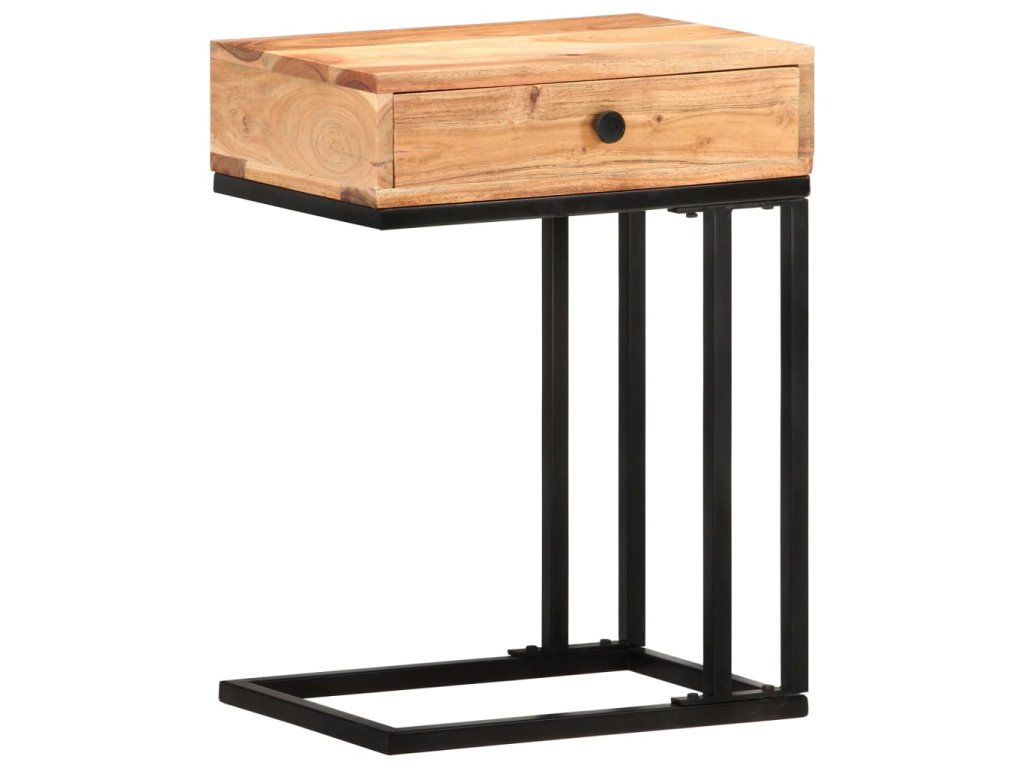 Masivní akáciové dřevo je tropické tvrdé dřevo s krásnou kresbou, které vydrží mnoho let. Tento stolek je zpevněný práškově lakovanou ocelí, takže je stabilní a robustní. 1 zásuvka poskytuje další úložný prostor pro uložení vašich věcí.