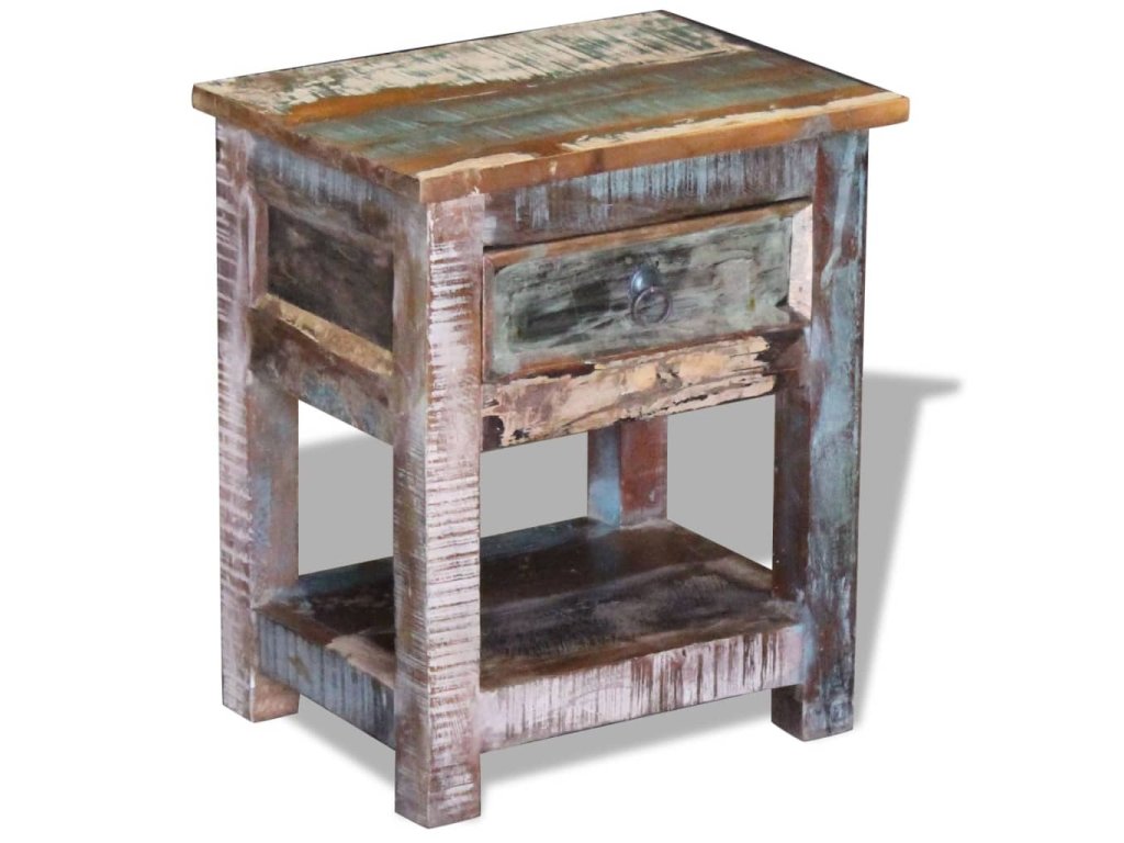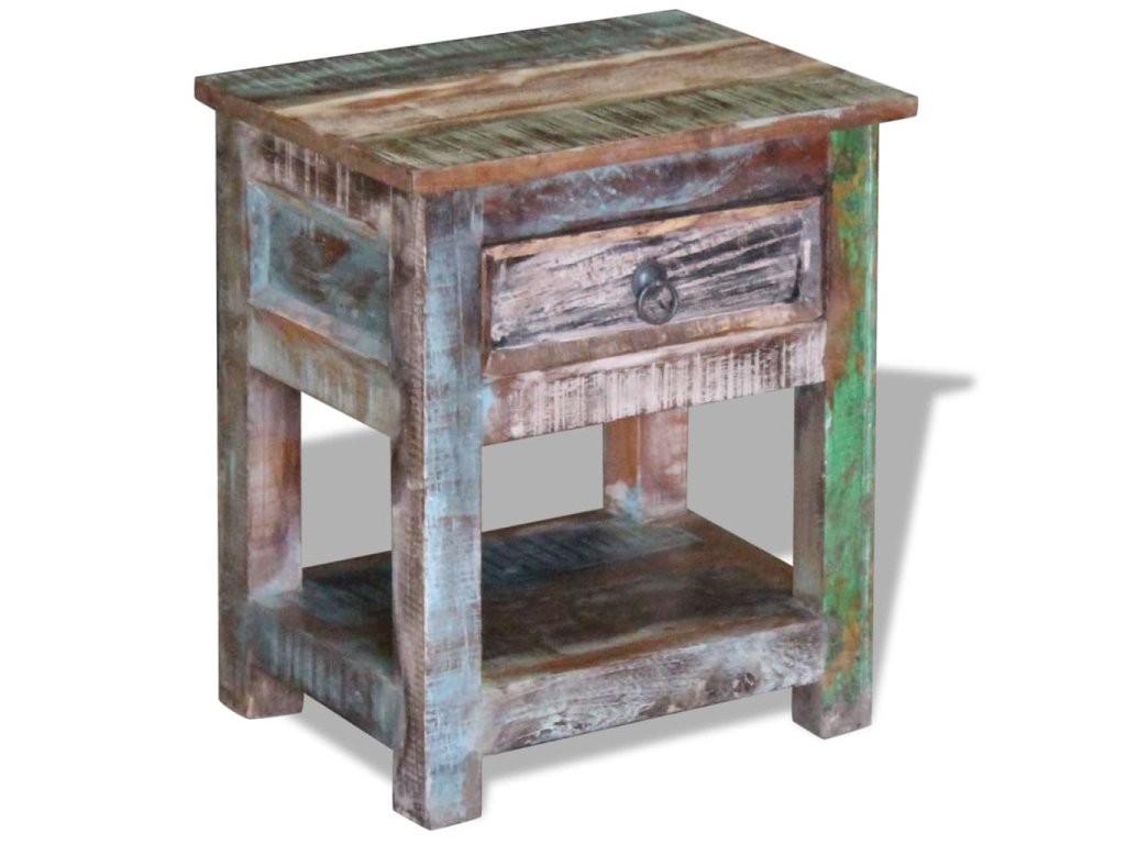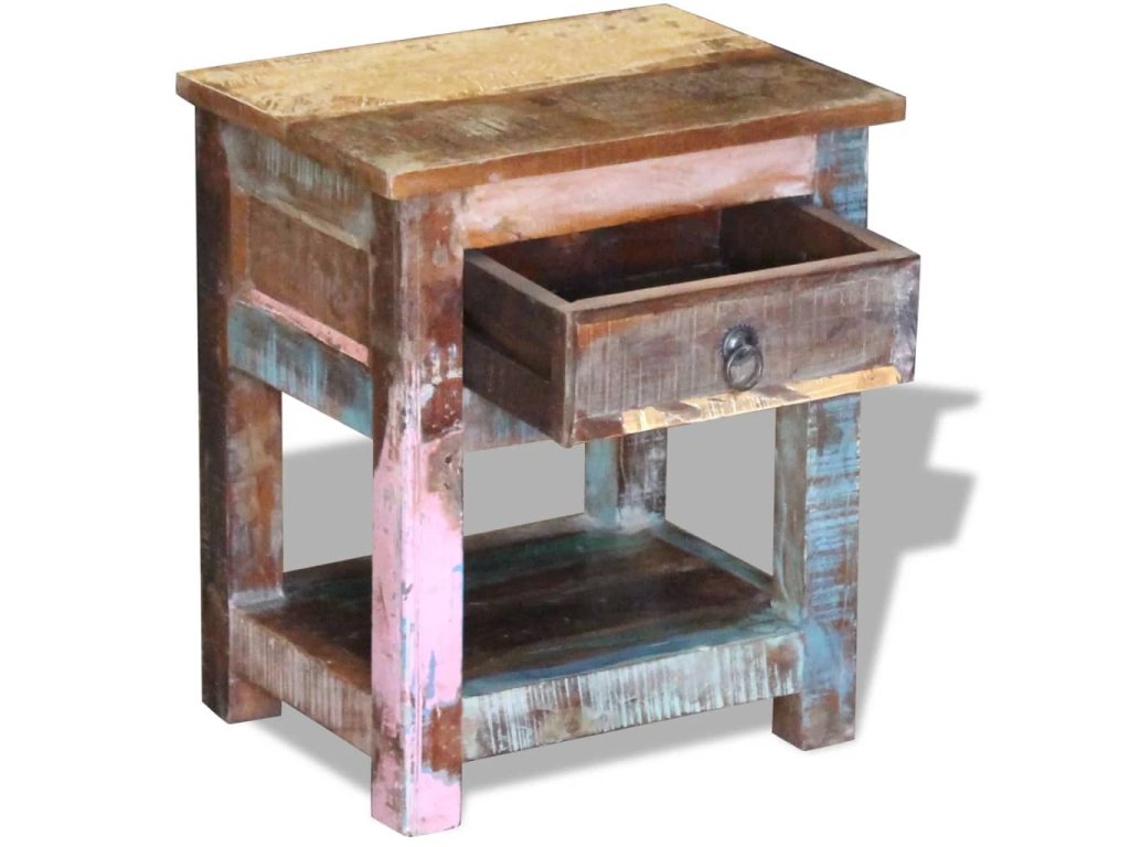 Odkládací stolek zásuvka masivní recyklované dřevo 43x33x51 cm 243456