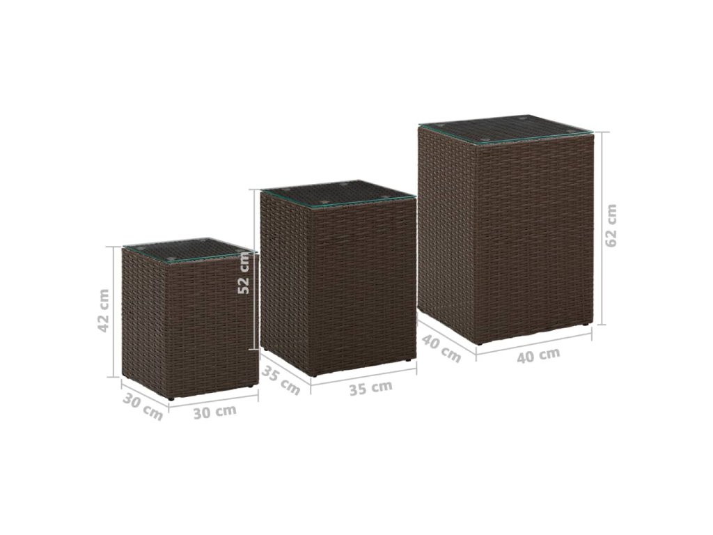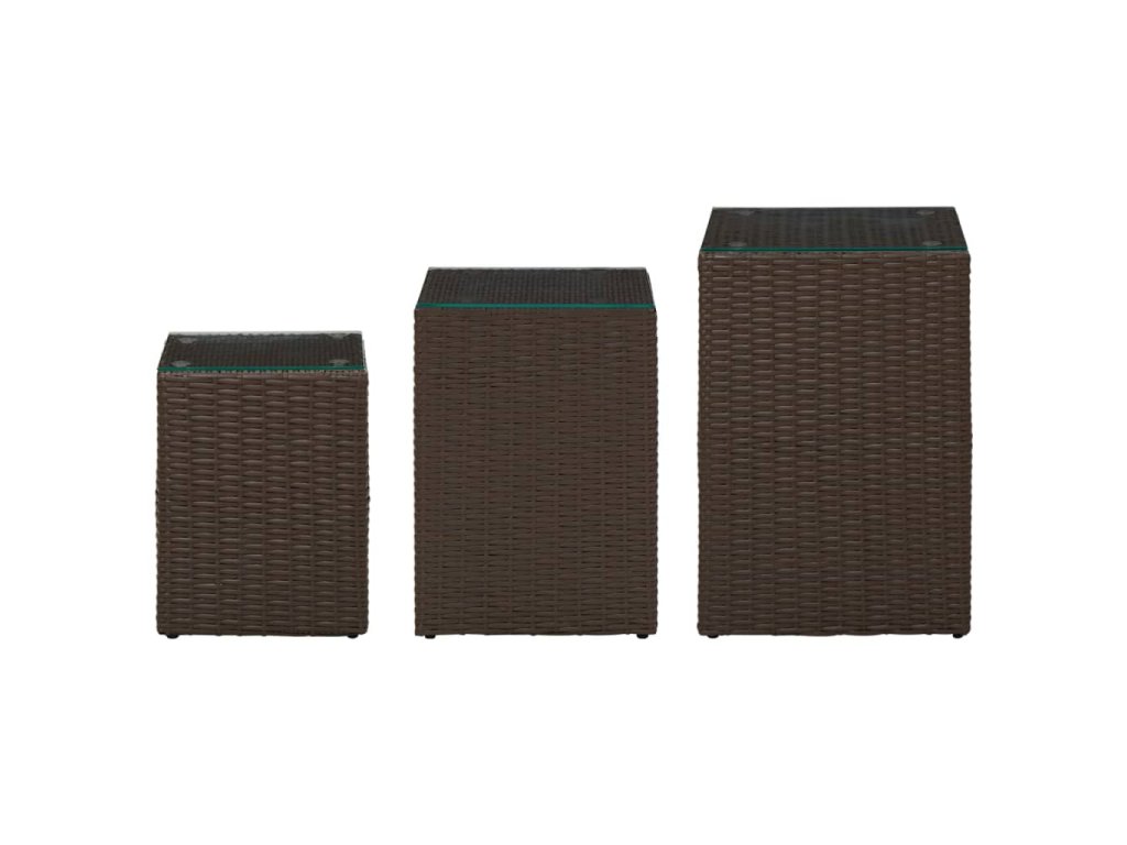 Odkládací stolky 3 ks se skleněnou deskou hnědé polyratan 316380