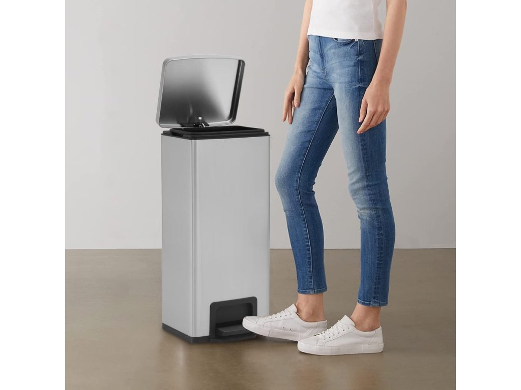 Koš je vyroben z nerezové oceli, jeho povrch je odolný proti otiskům prstů a odpuzuje nečistoty. Tento koš díky svému čistému minimalistickému vzhledu velmi dobře zapadne do vašeho interiéru mezi ostatní zařízení. Je vybaven víkem s měkkým zavíráním s manuální nožní pákou a můžete jej pohodlně používat každý den v týdnu bez nutnosti dotýkat se koše rukama. Robustní vnitřní plastová nádoba lze snadno vyjmout a koš vyprázdnit. Víko zajišťuje, že odpad zůstává neustále skrytý.
