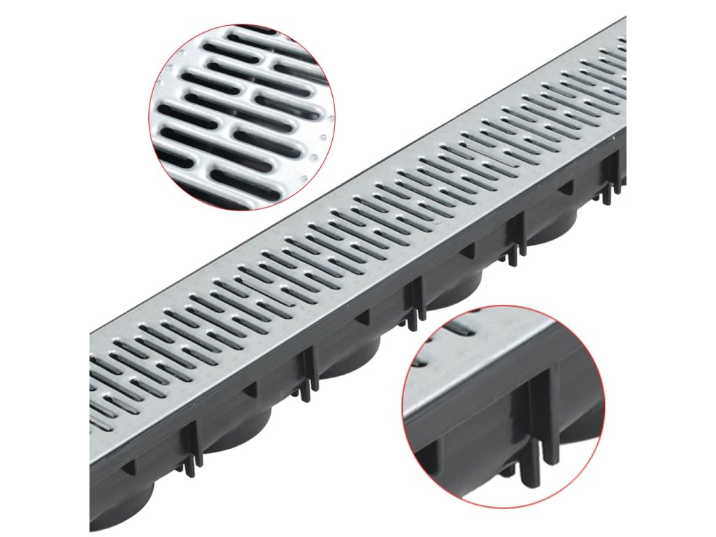 Tyto modulární kanály disponují jedinečným spojovacím systémem, který vám umožní kanály snadno napojovat jeden na druhý. Odtokové kanály jsou vyrobeny z vysoce kvalitního plastu a jsou vybaveny mřížkami z pozinkované oceli, díky které jsou odolné vůči korozi, mrazu i teplu, a tudíž velmi odolné.
