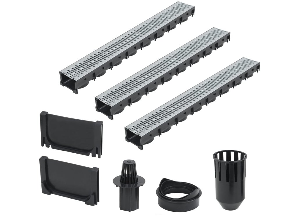 Komplexní sada obsahuje 3 odtokové kanály s mřížkami z pozinkované oceli, 1 filtrační systém, 1 spodní výstupní konektor a 2 koncové uzávěry. Představuje dokonalé řešení pro zachycování a odvádění přebytečné vody z příjezdových cest, dvorků a jiných venkovních prostor.