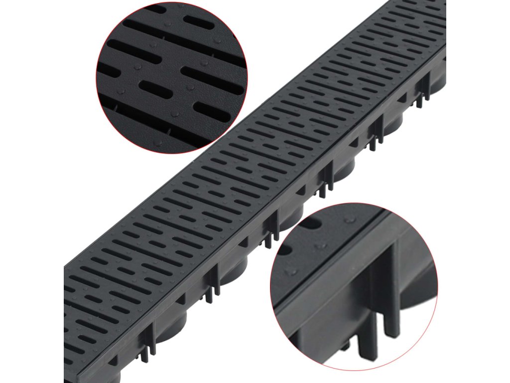 Každý kanál disponuje jedinečným spojovacím systémem, který umožňuje snadné napojení na další díl. Odtokový kanál je vyroben z vysoce kvalitního plastu, který je je odolný vůči korozi, mrazu i teplu, a tudíž trvanlivý a ideální pro dlouhodobé použití.