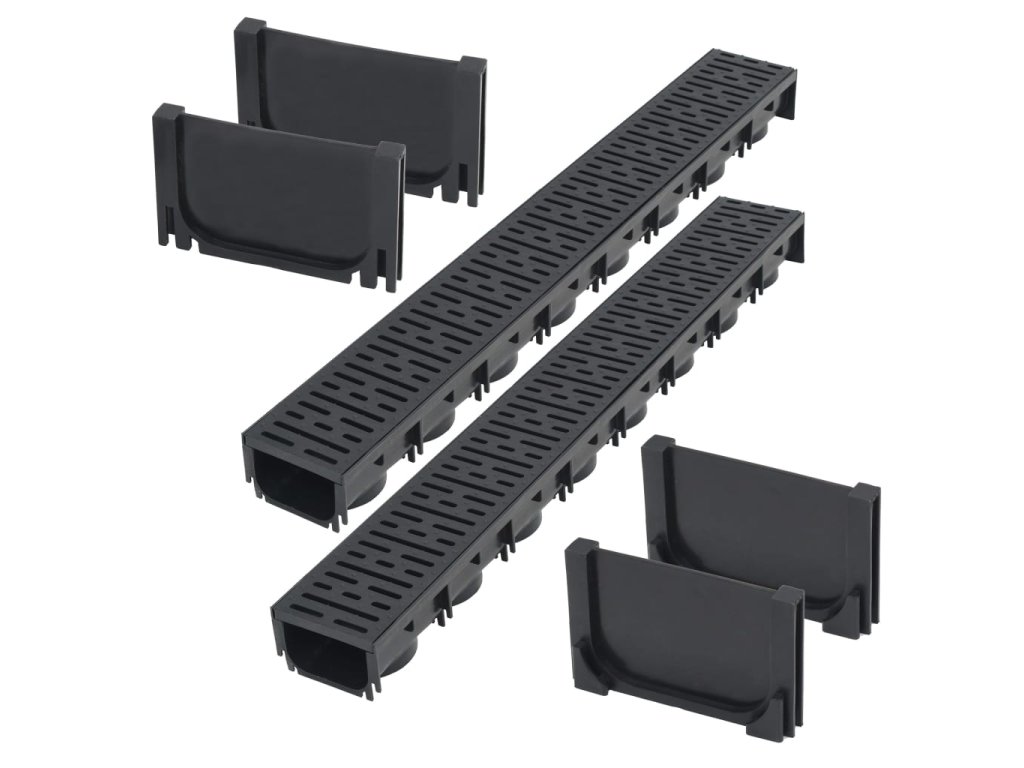 Tato kompletní sada sestává ze 2 odtokových kanálů (každý s plastovou mřížkou) a 4 koncových uzávěrů. Představuje dokonalé řešení pro zachycování a odvádění přebytečné vody z příjezdových cest, dvorků a jiných venkovních prostor.
