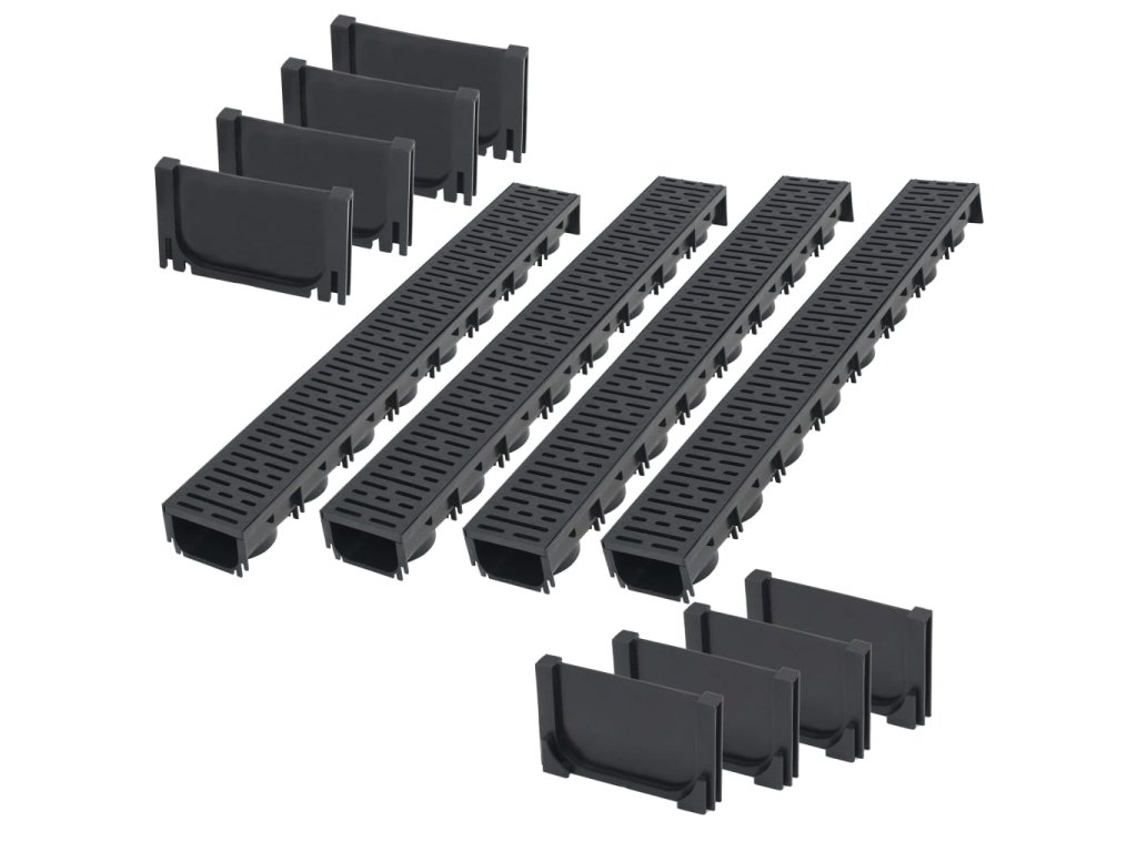Tato kompletní sada sestává ze 4 odtokových kanálů (každý s plastovou mřížkou) a 8 koncových uzávěrů. Představuje dokonalé řešení pro zachycování a odvádění přebytečné vody z příjezdových cest, dvorků a jiných venkovních prostor.