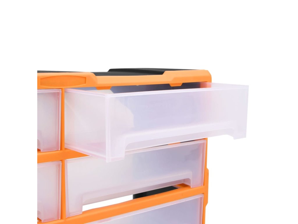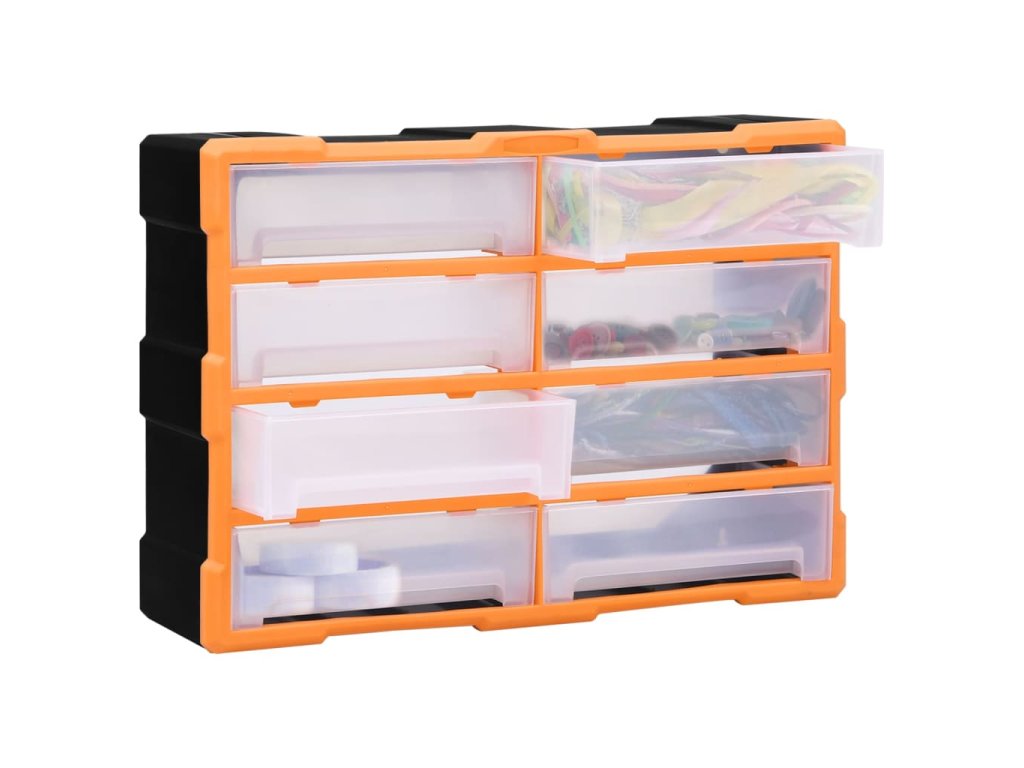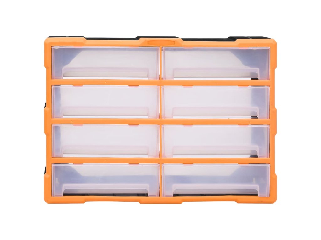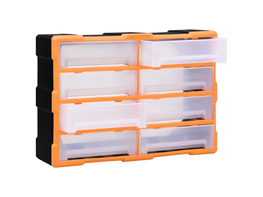 Úložný box obsahuje 8 velkých zásuvek a nabízí spoustu úložného prostoru. Efektivně pomáhá s organizací nářadí a dalšího příslušenství, jako jsou spojovací materiály, takže je budete mít vždy po ruce. Skříňka je vyrobená z nárazuvzdorného plastu, je tedy jak odolná, tak stabilní. Zásuvky z průhledného plastu umožňují snadno a rychle rozpoznat obsah. Box se skvěle hodí k ukládání matic, šroubů, hřebíků a dalších spojovacích prvků a příslušenství obecně.