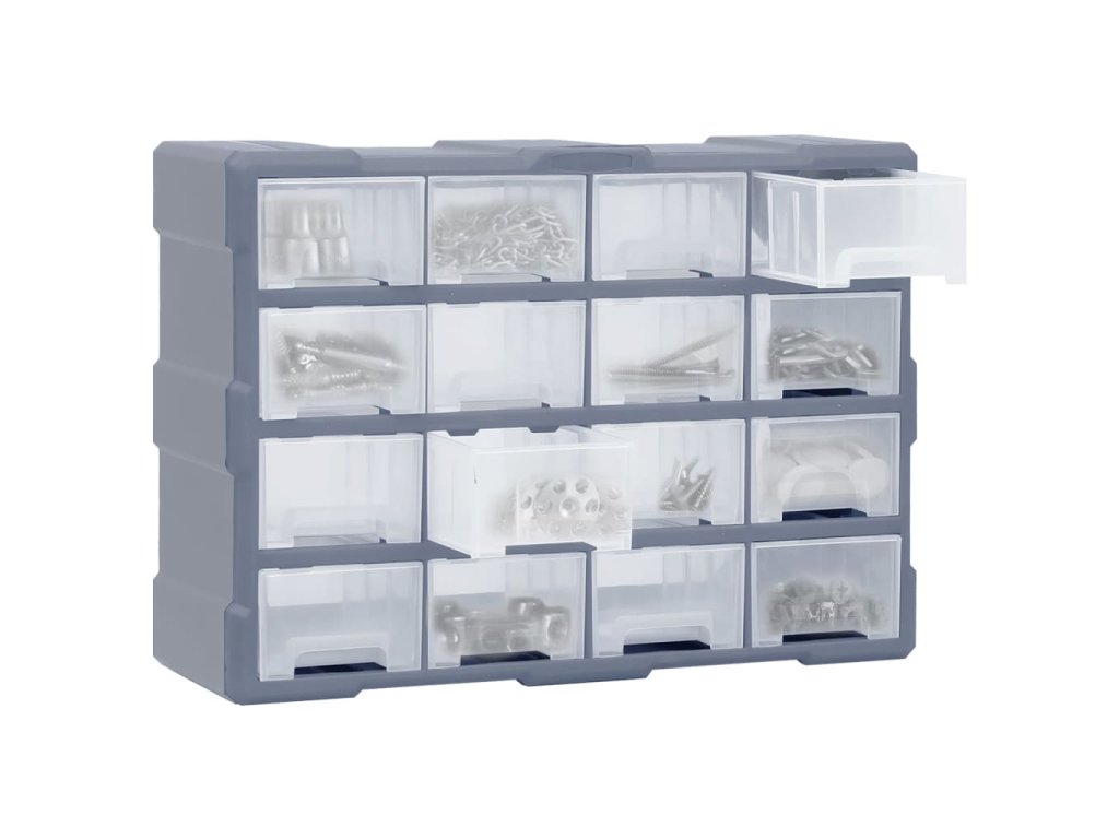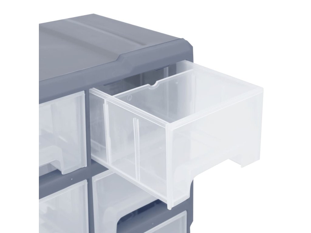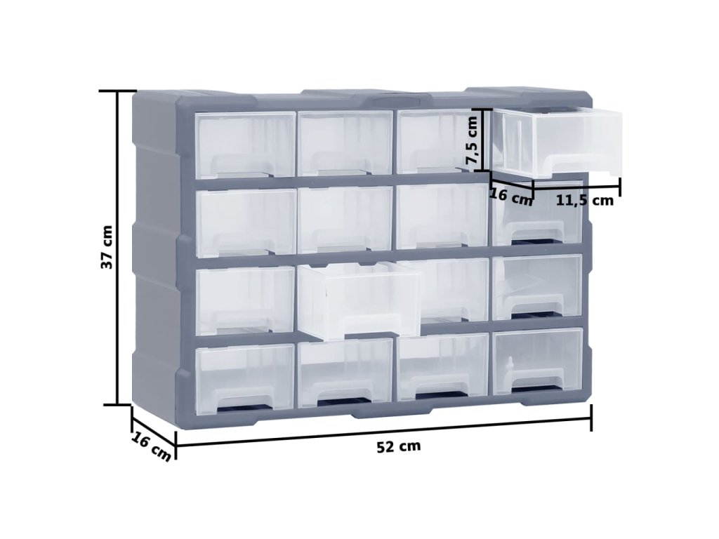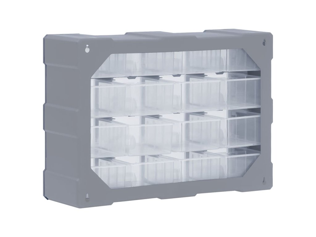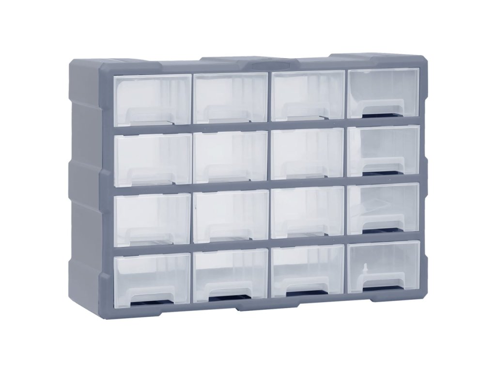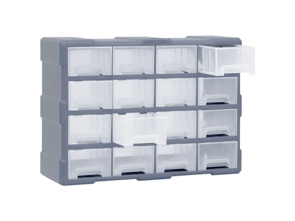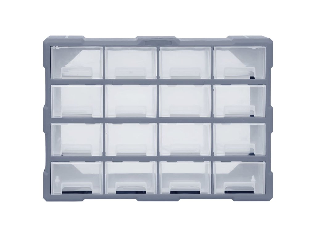 Úložný box obsahuje 16 středních zásuvek, aby vyhověl vašim každodenním potřebám. Pomůže vám přehledně si uspořádat své nářadí a další příslušenství, jako jsou upevňovací materiály, které budete mít nyní vždy po ruce. Skříňka je vyrobená z nárazuvzdorného plastu, je tedy jak odolná, tak stabilní. Zásuvky z průhledného plastu umožňují snadné a rychlé rozpoznání obsahu. Box se skvěle hodí k ukládání matic, šroubů, hřebíků a dalších upevňovacích dílů a příslušenství obecně.