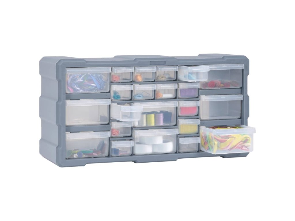 Tento nepostradatelný organizér obsahuje celkem 22 zásuvek a je určený k přehlednému skladování celé řady věcí. Můžete ho použít i jako box na šití nebo na nehtovou kosmetiku.