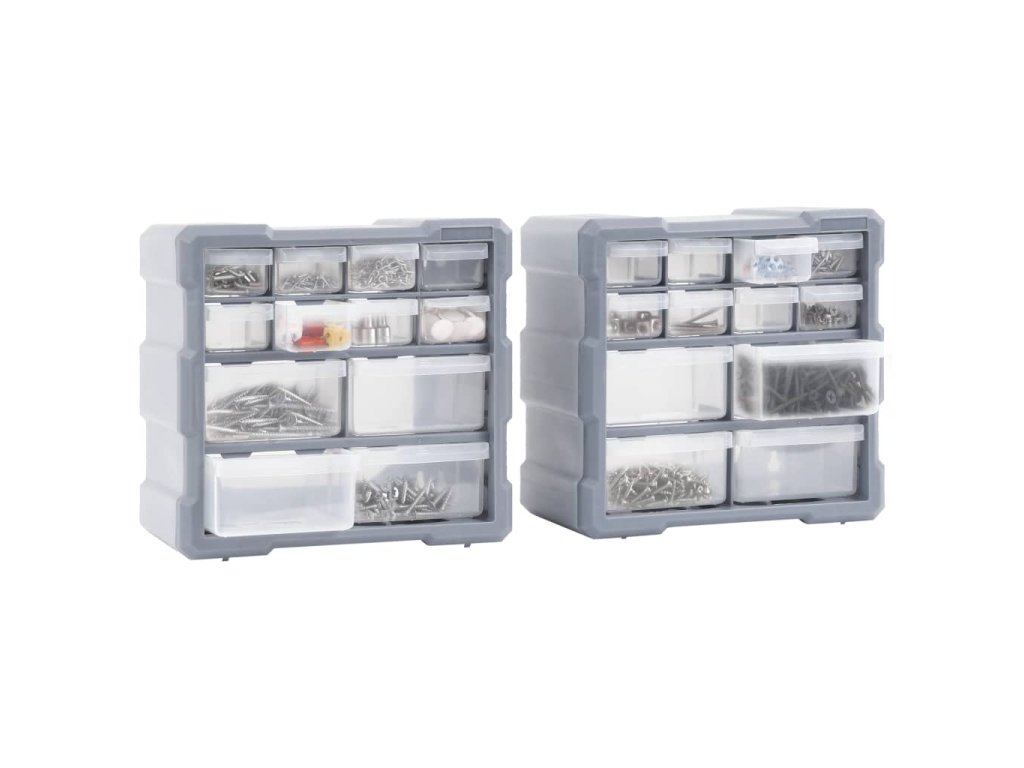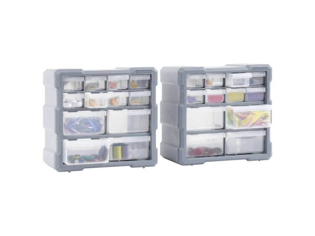 Tyto nepostradatelné organizéry mají celkem 24 zásuvek a jsou určené k přehlednému skladování celé řady věcí. Můžete je použít i jako boxy na šití nebo na nehtovou kosmetiku.