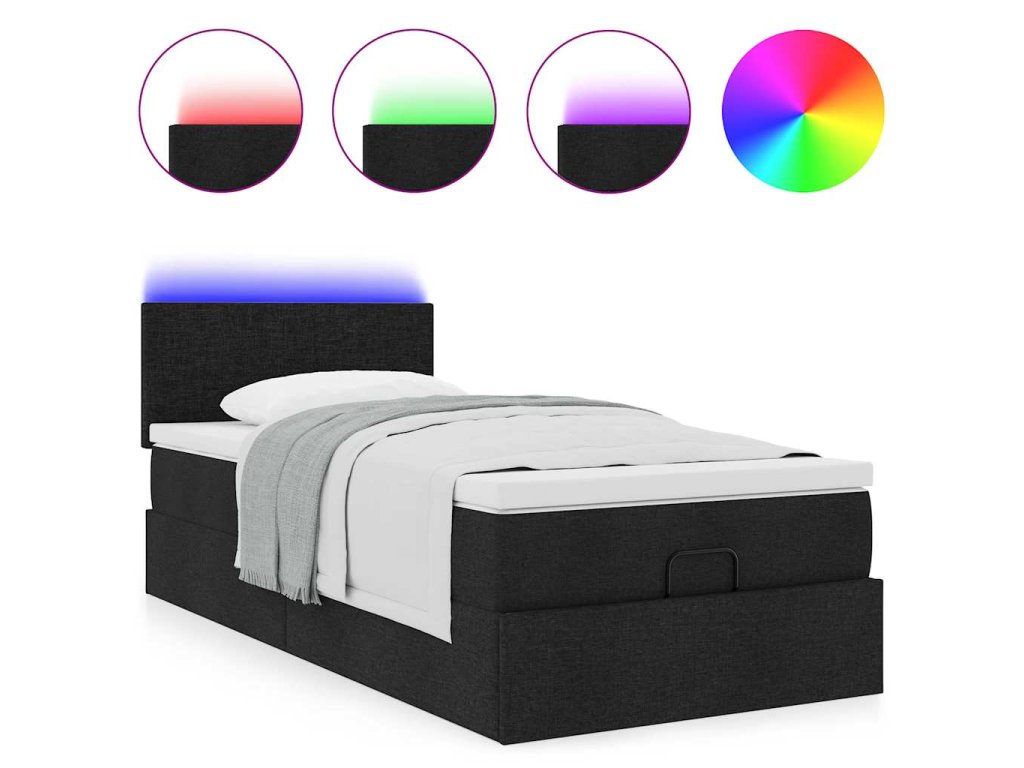 Osmanská postel s matrací & LED černá 80x200cm látka 3312182