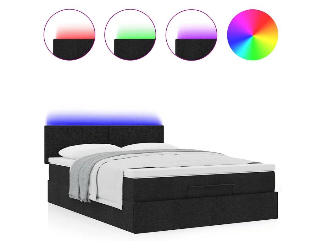 Osmanská postel s matrací & LED diody černá 140x200 cm látka 3312231