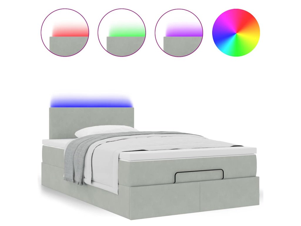 Osmanská postel s matrací & LED světle šedá 120x190cm samet 3312536